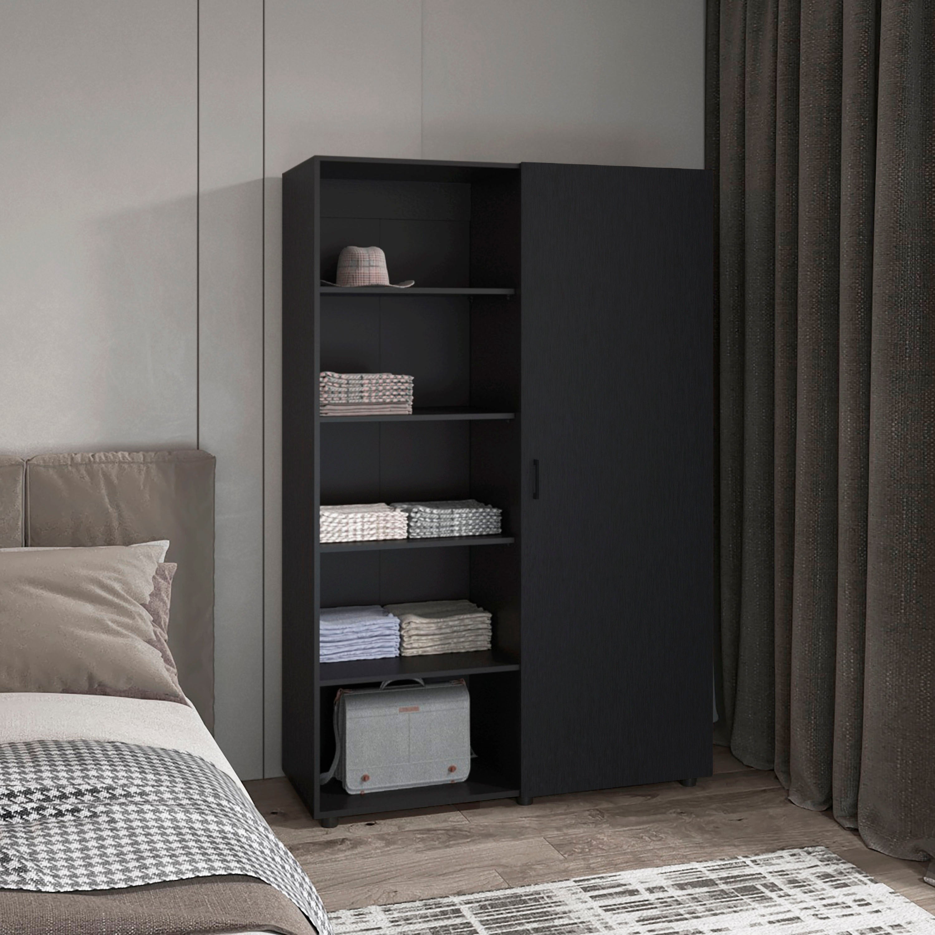 Eco 72" high 6-tier shelf one-door cabinet armoire with two hanging rods