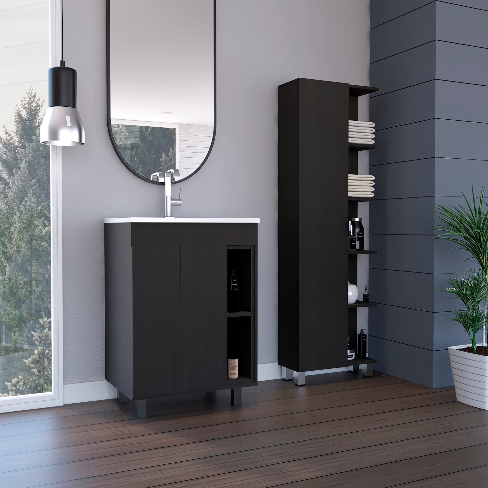 Gouda Single Bathroom Vanity is the necessary complement for your bathroom. This solid black manufactured wood finish vanity is perfect...