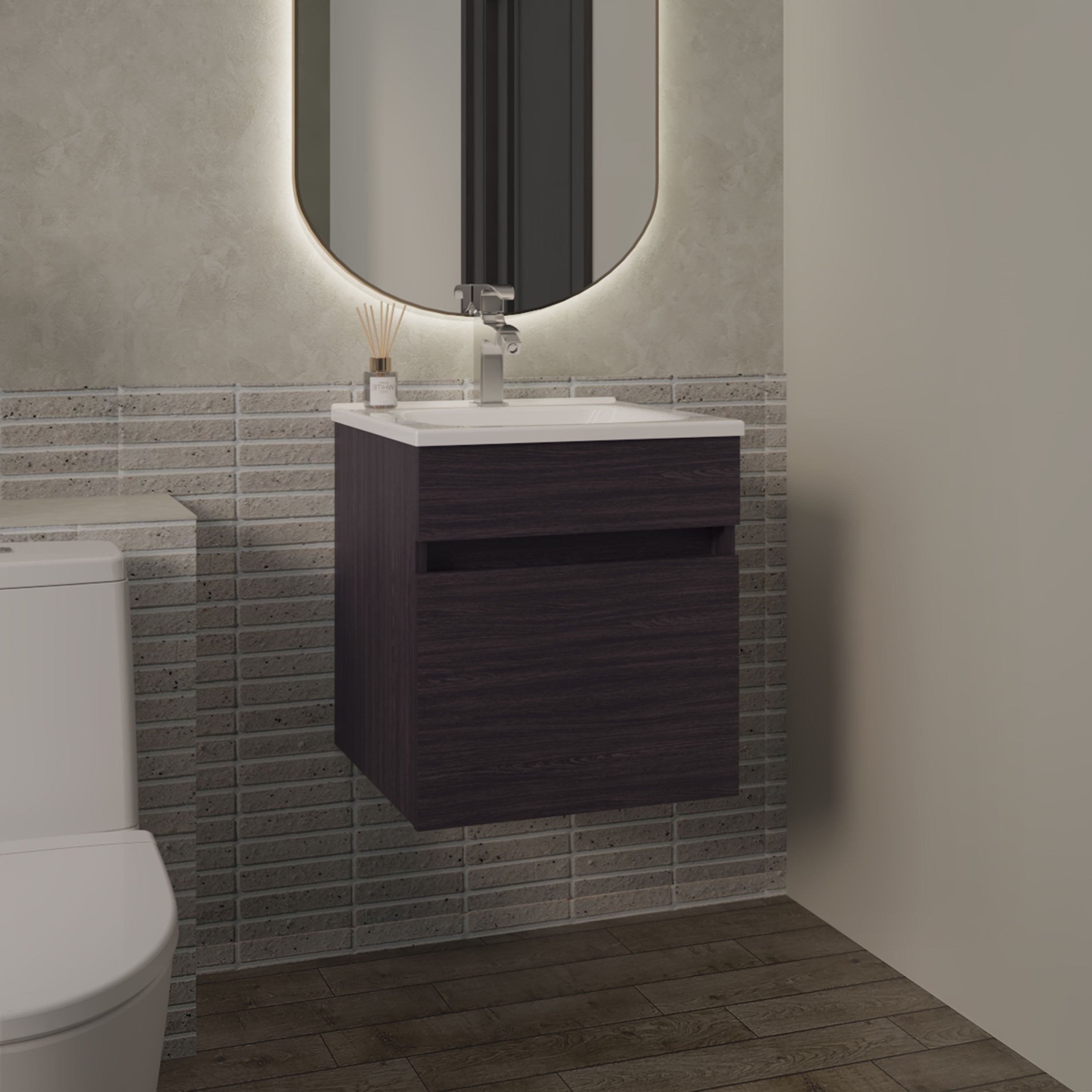 Nissi floating, wall-mounted vanity bathroom vanity with one door cabinet and resin sink compact