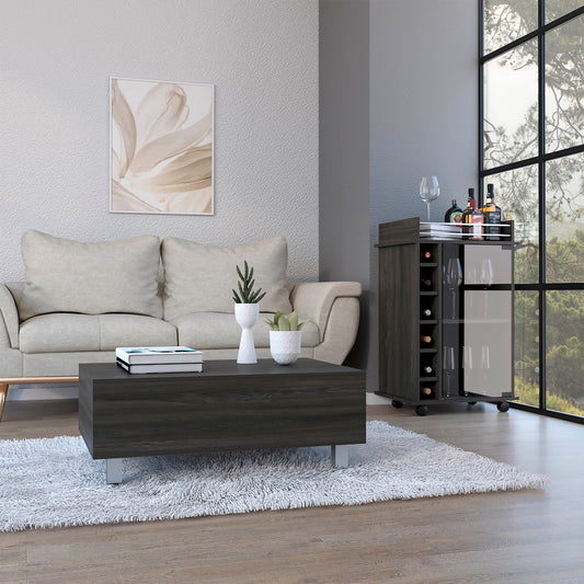 Vassel 2 piece living room set, bar cart + coffee table, carbon espresso finish