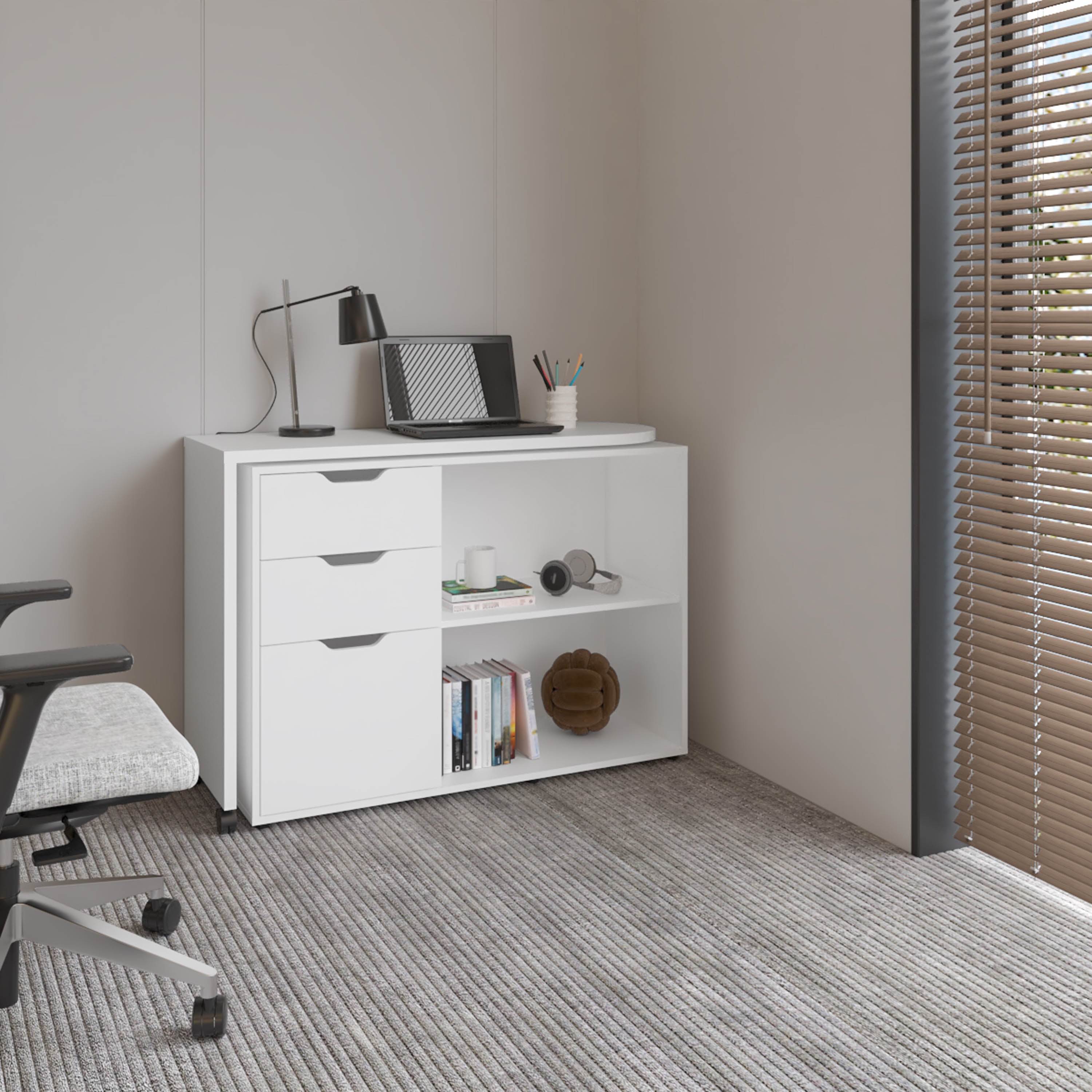 Alfie rotable desk 72-inch wide or compact, adjustable workstation in two directions with storage compartments, for home office or studio