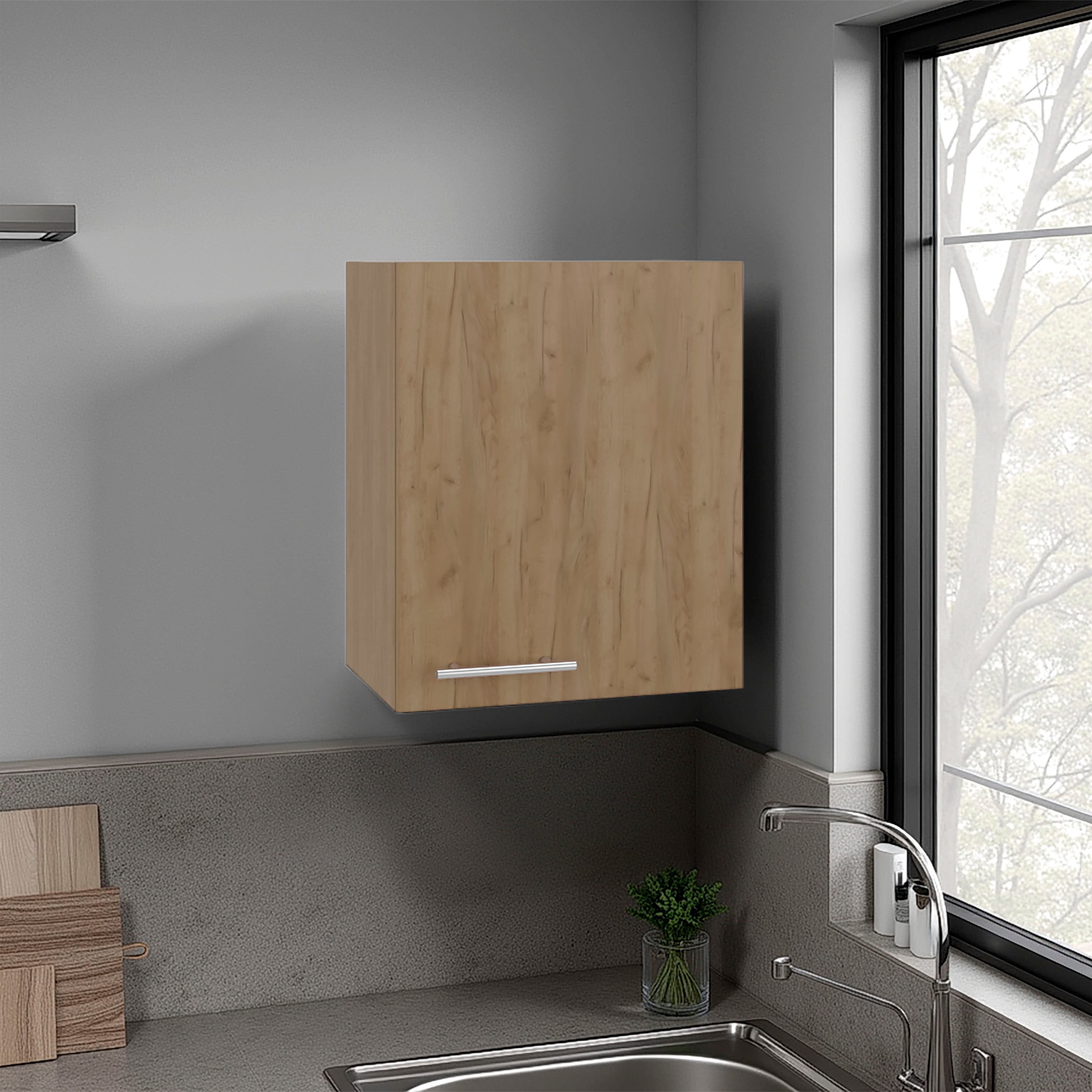 Tuhome manchester 20-inch wall cabinet with one door and two interior shelves, space-saving mounted storage solution for bathroom, kitchen, laundry or garage organization, compact vertical cabinet for everyday home essentials