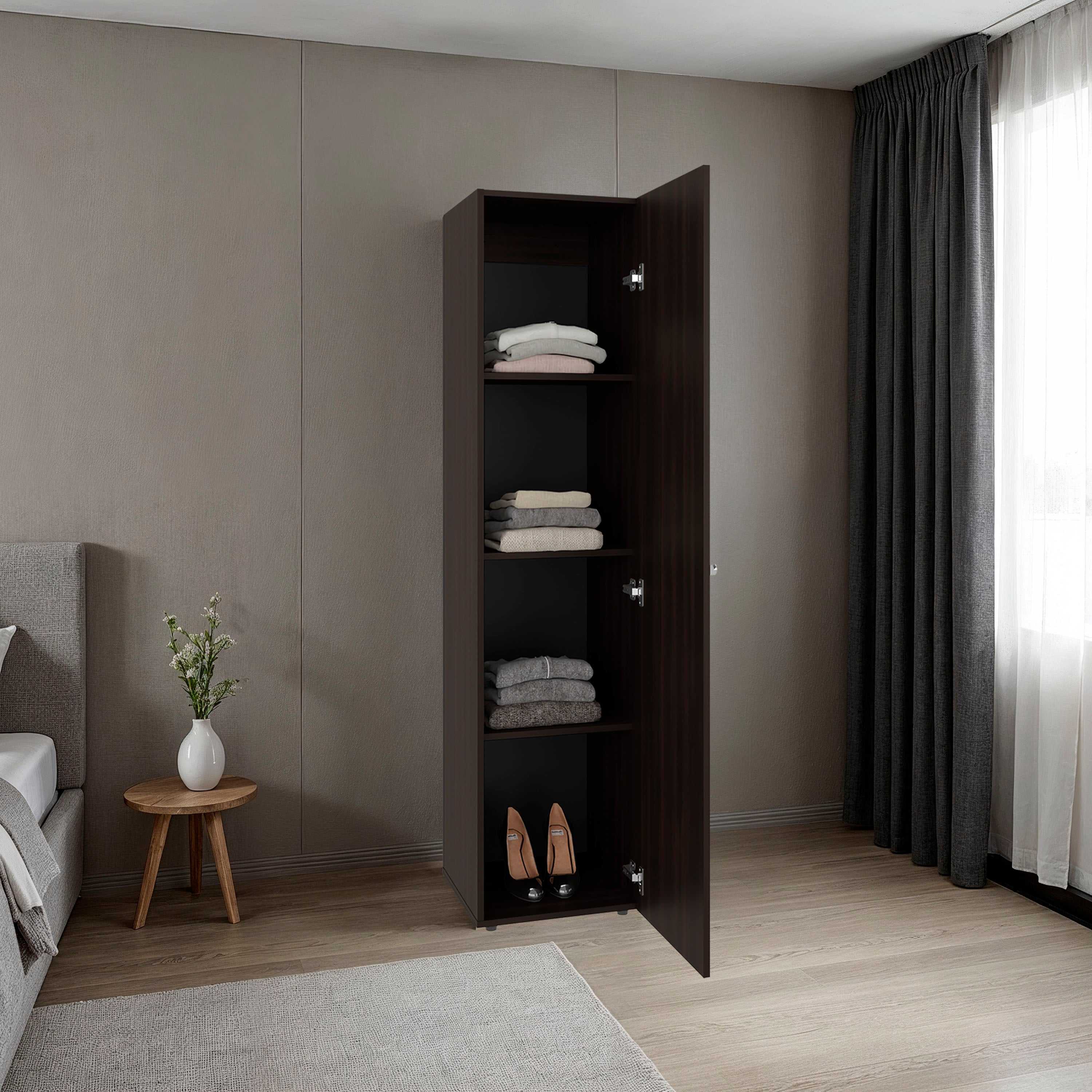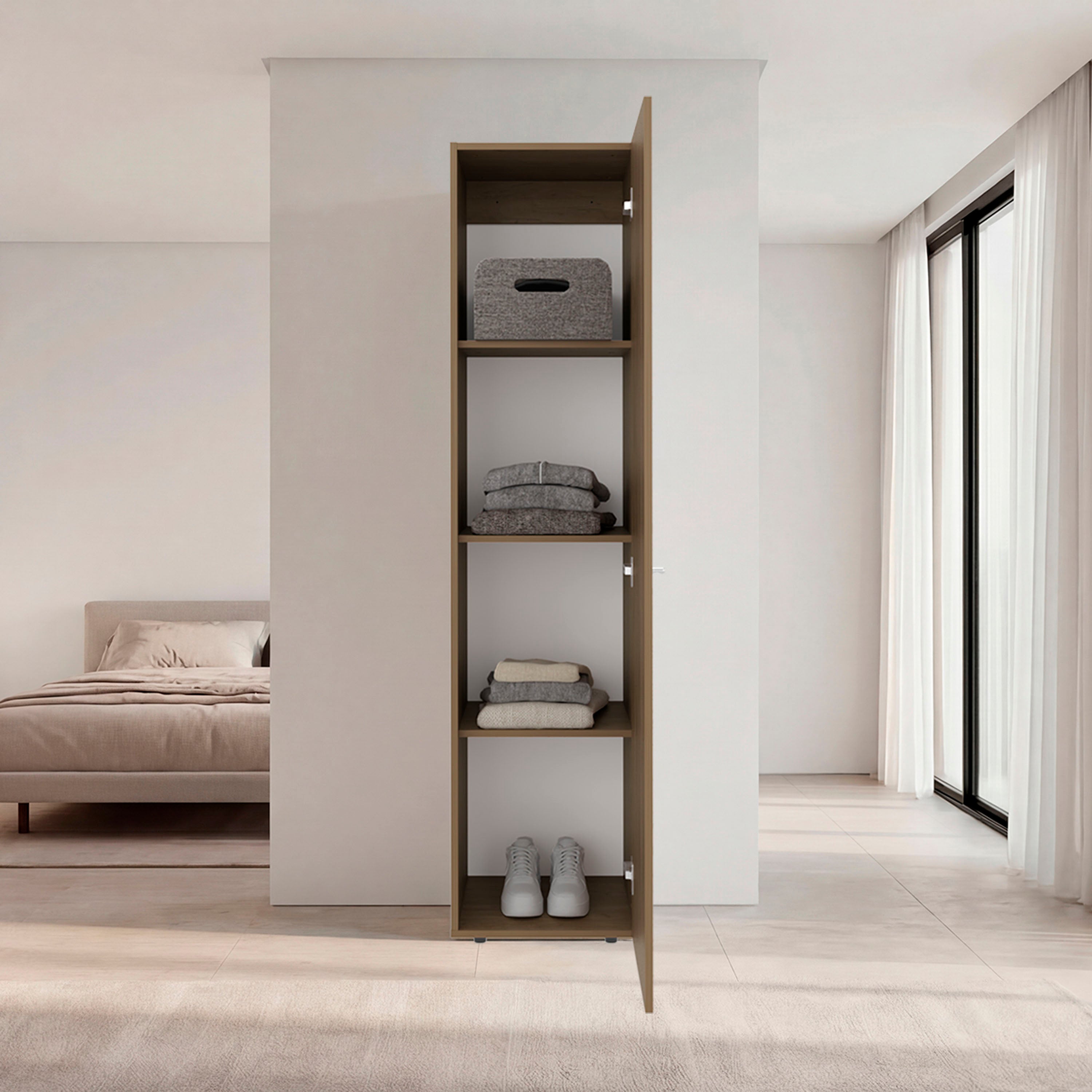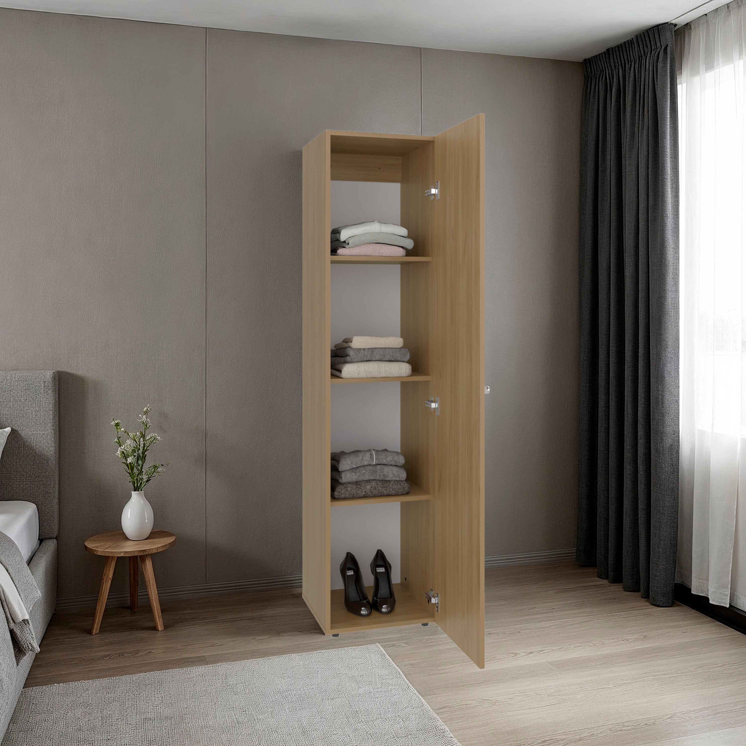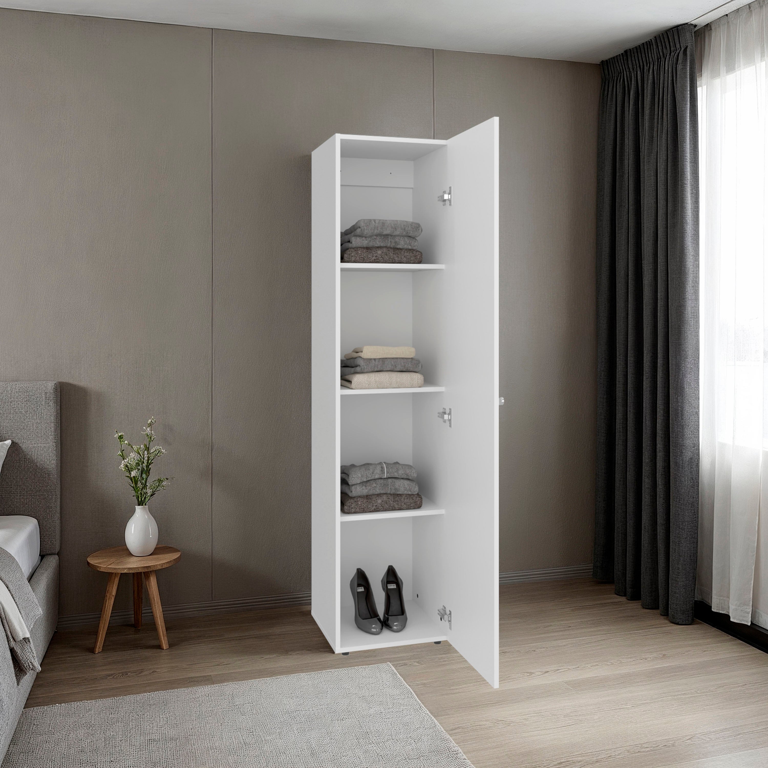 Home linen freestanding tall cabinet with single door and 4 horizontal storage shelves, cabinet for bathroom, bedroom or laundry room