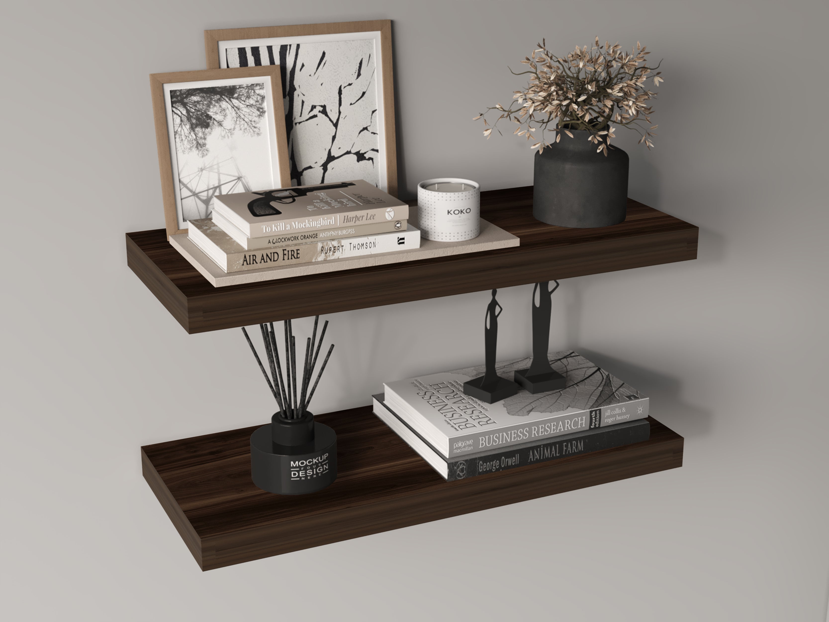 Ecco 47" wide floating shelves set of 2, shelves for wall decor for bedroom, bathroom storage shelves, book shelves for living room