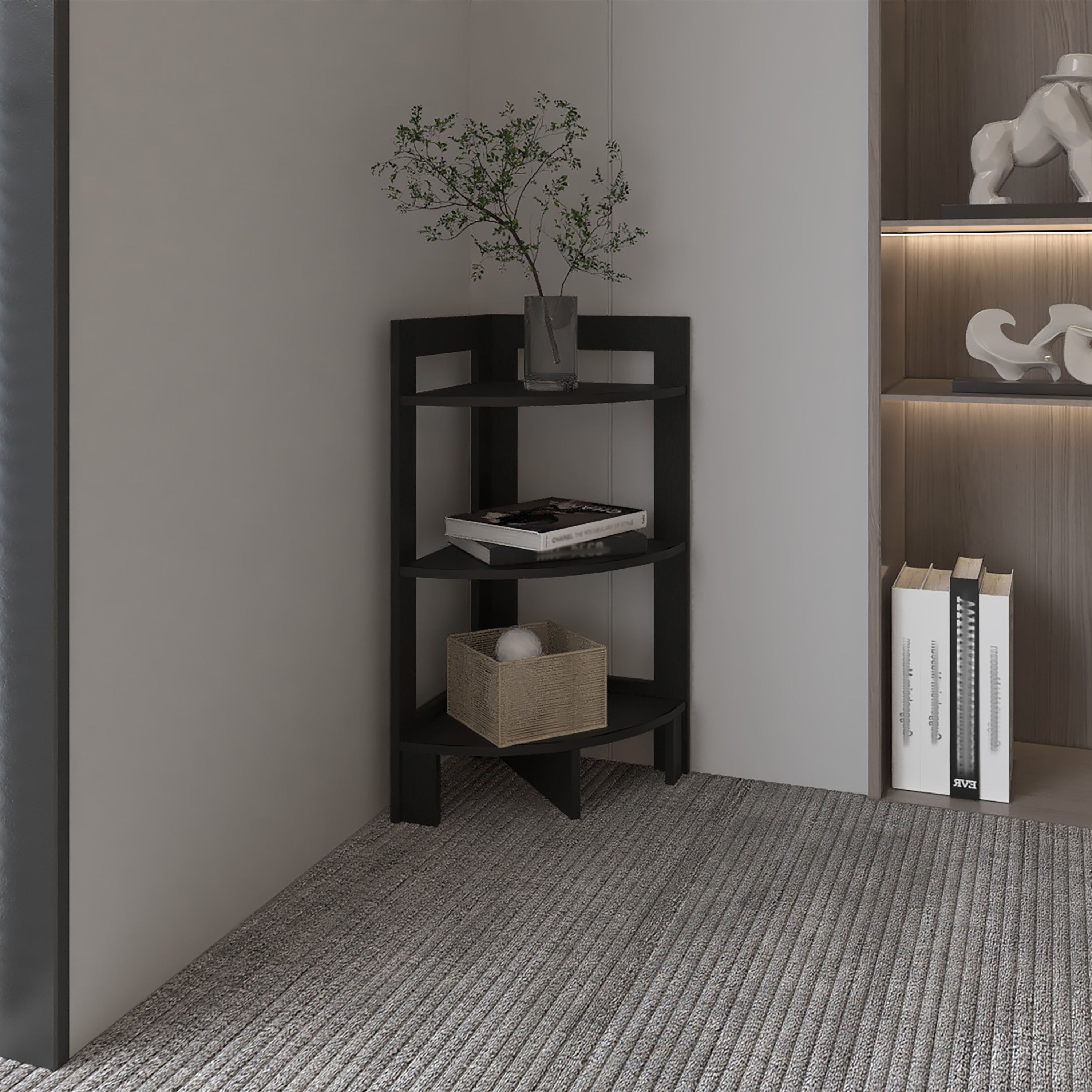 Riga corner design side table with three shelves, functional display furniture for living room
