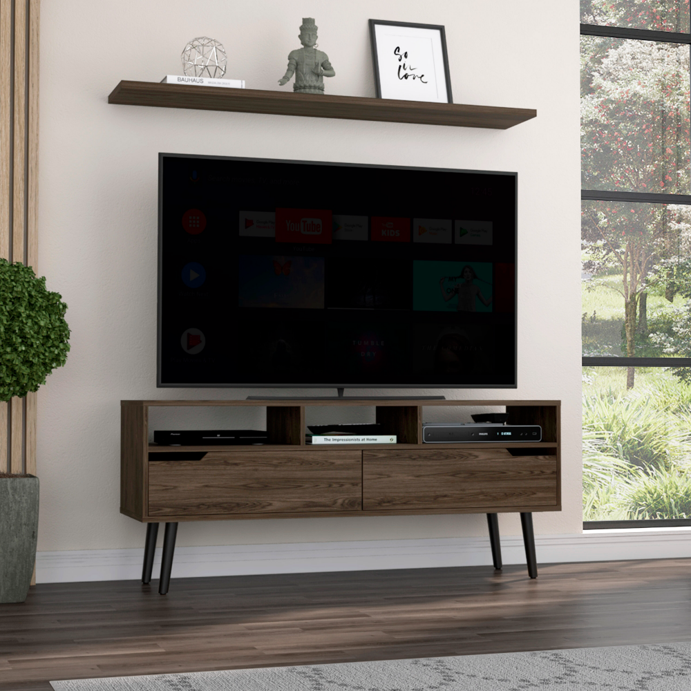 Oslo tv stand for tv´s up 51", two drawers, four legs, three open shelves