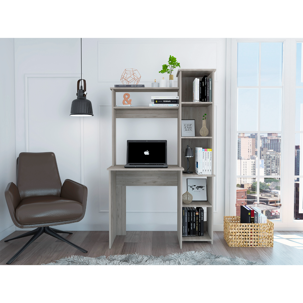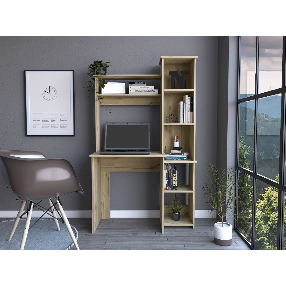 Tuhome versalles writing desk with two superior shelves, five side open storage compartments, space-saving modern workstation design for studios and offices, ideal for organization, books, accessories and daily productivity