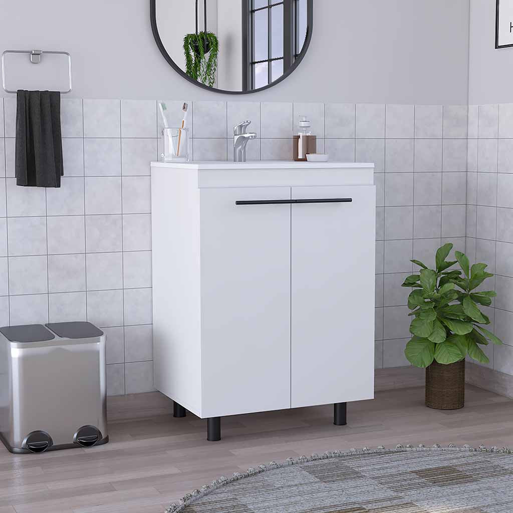 Tuhome khari 24" floor cabinet with double doors, two shelves, adjustable legs, modern storage solution for bathroom