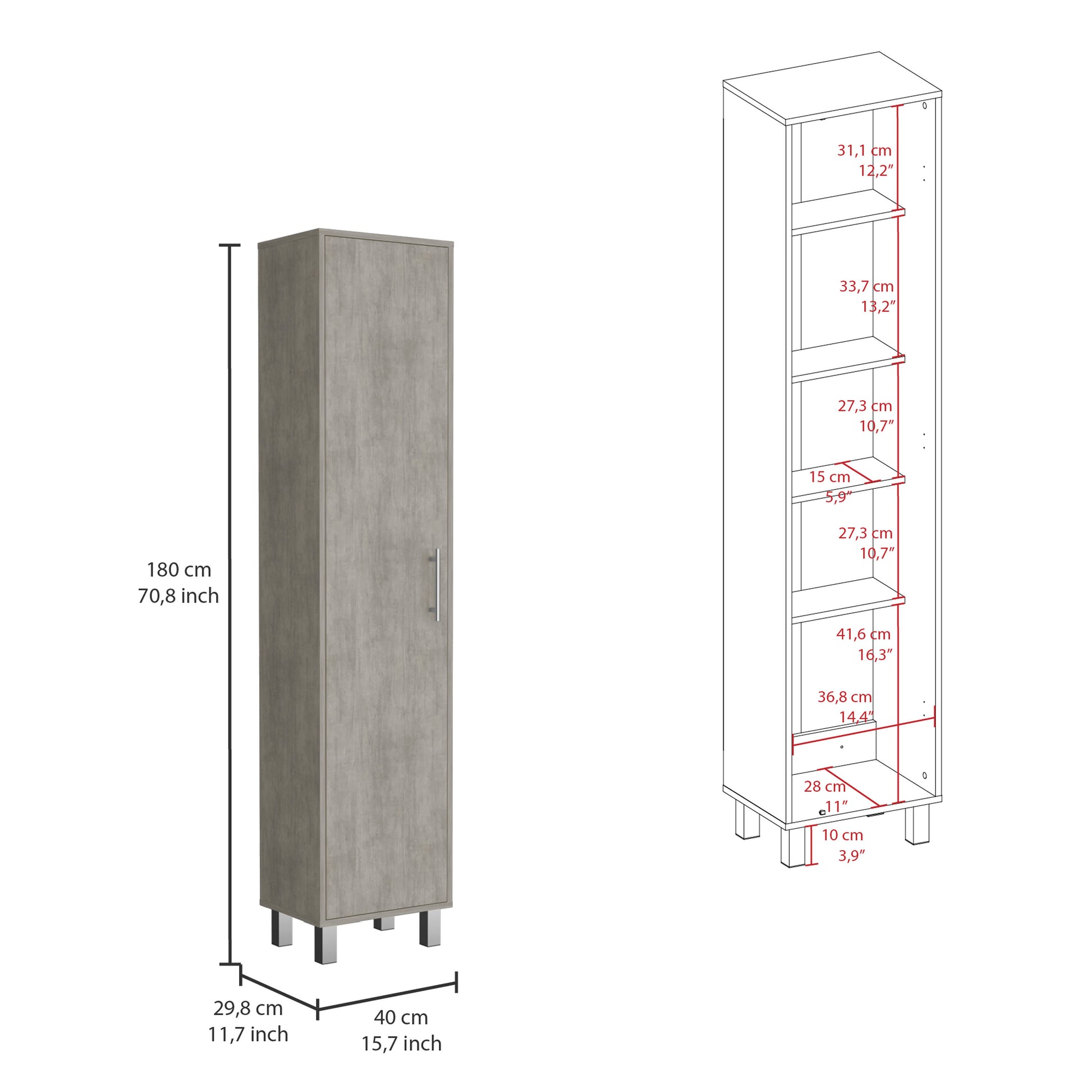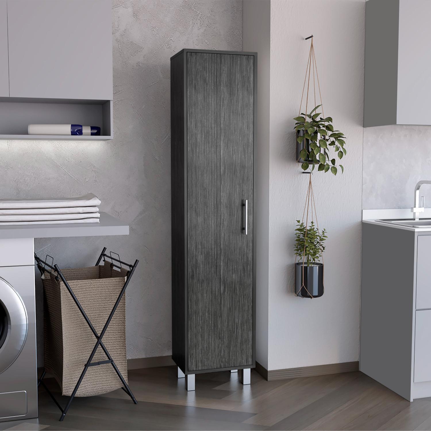 At Laska, we understand the importance of organization and convenience. That's why we've designed our Laska Storage Cabinet- perfect for all your extra storage needs! With its five internal shelves, wide door, and broom hanger, this cabinet provides plenty of space for your belongings- while its ergonomic size means it can fit practically anywhere in your home. Plus, the metal handle and legs give this cabinet a modern touch that will complement any décor. So don't struggle with insufficient storage space any longer-order your Laska Storage Cabinet today!