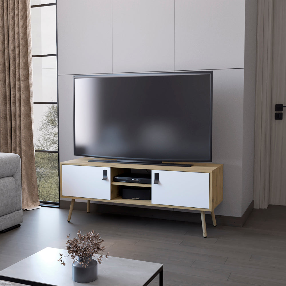 The Huna TV Rack, a practical and contemporary design combination, will elevate your entertainment area. Featuring two hinged drawers (22.4"W...