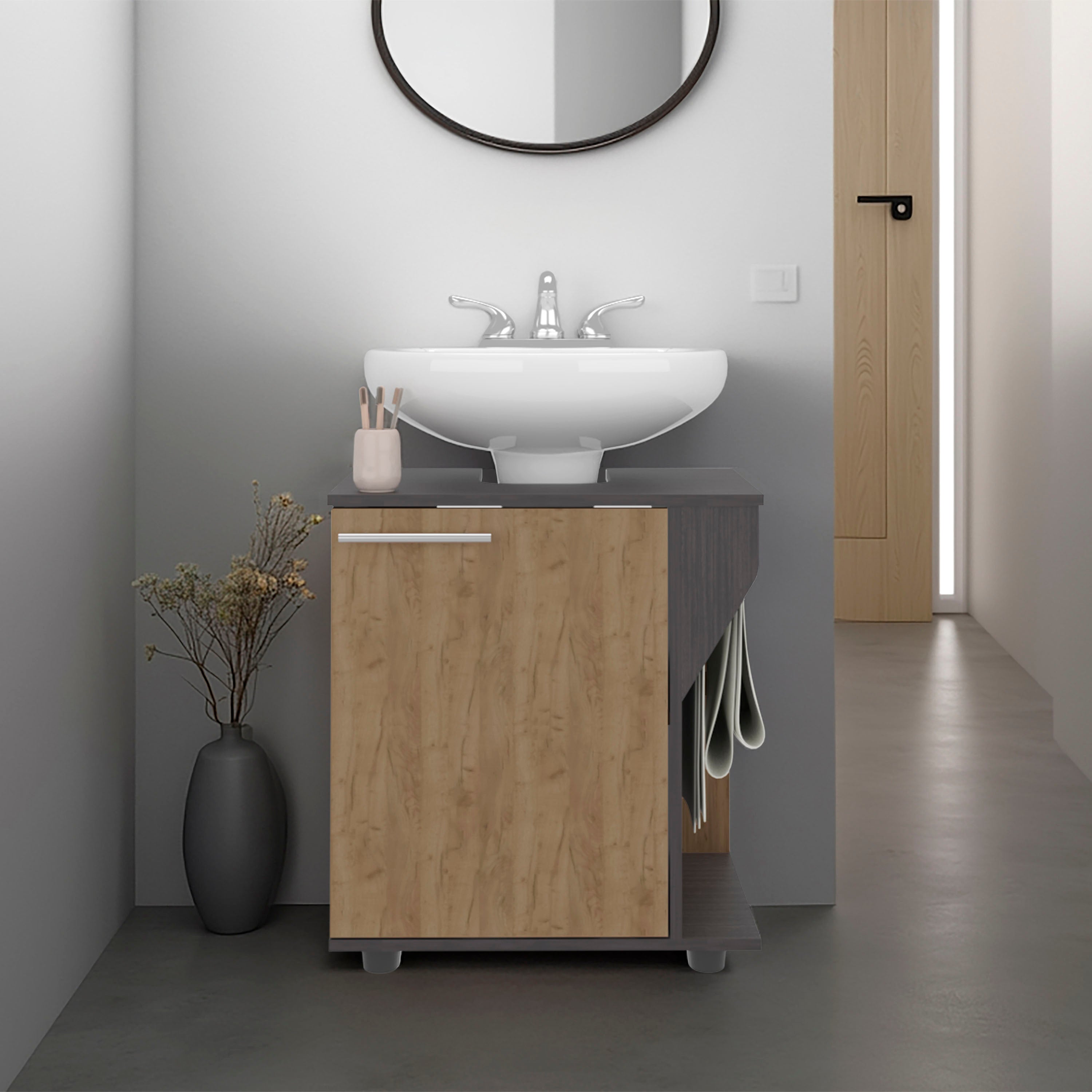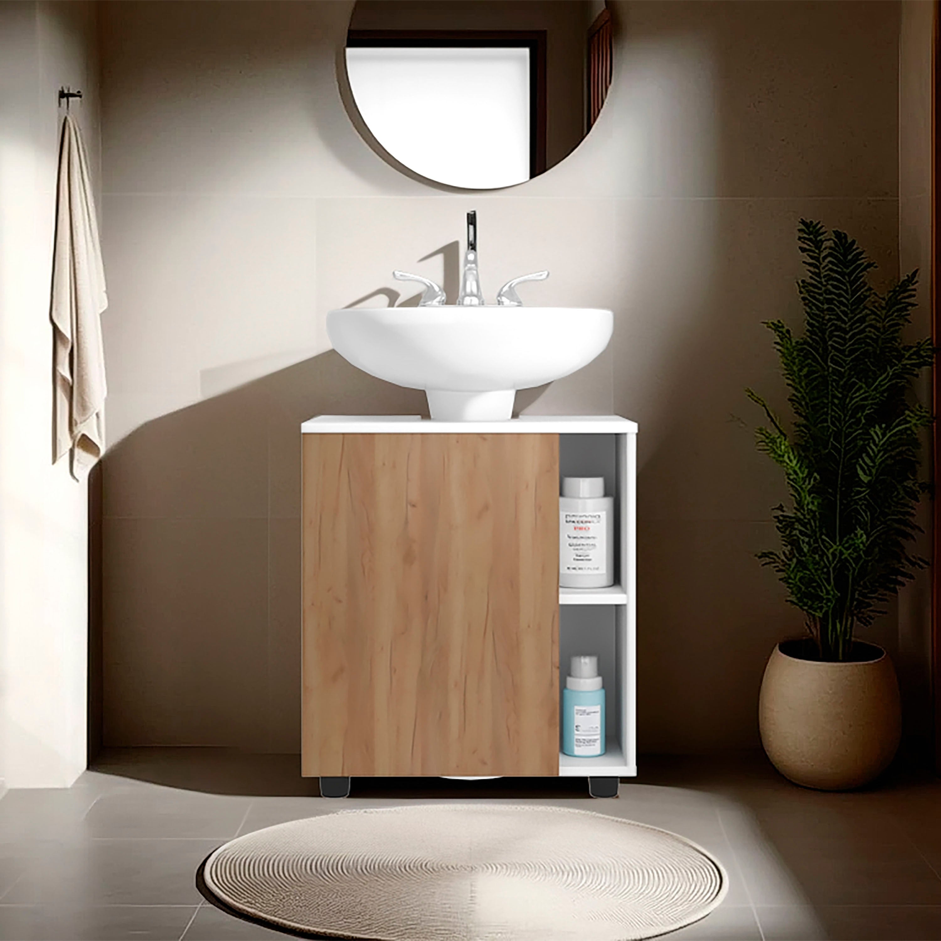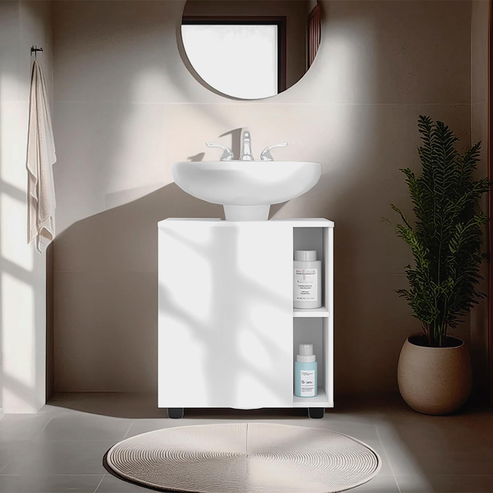 Pascuale two side shelves under sink cabinet with one doors, cut-out back, compact 22” freestanging bathroom storage