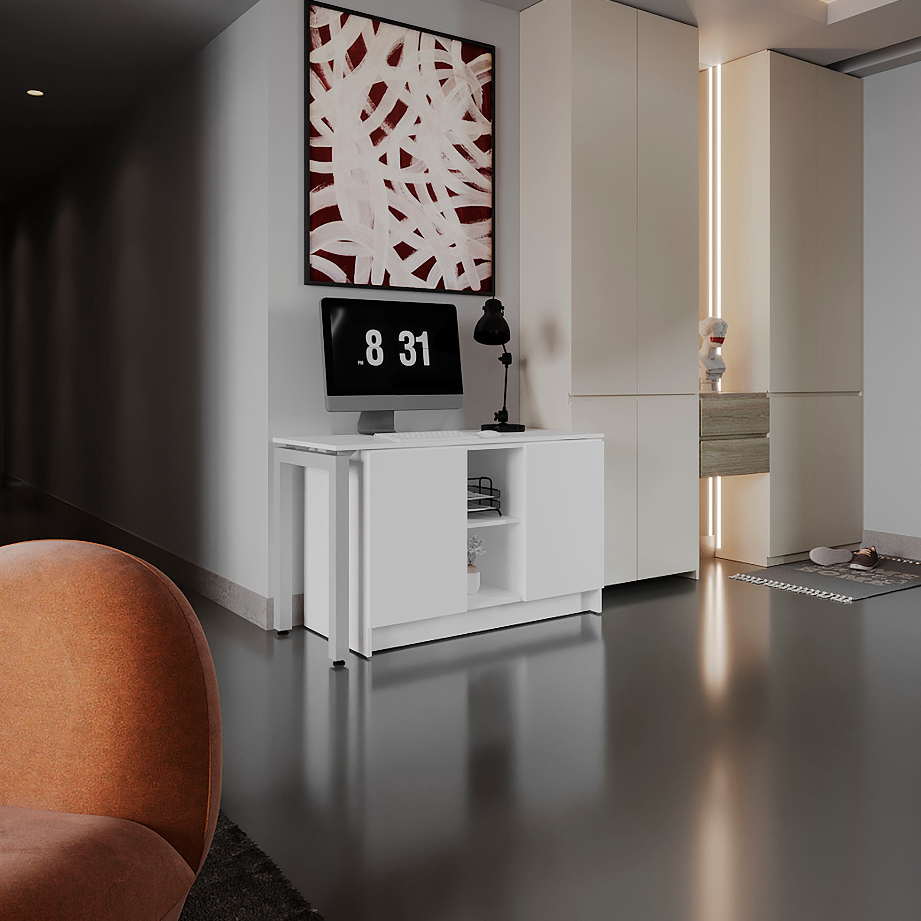 Alfie rotable desk 72-inch wide or compact, adjustable workstation in two directions with storage compartments, for home office or studio
