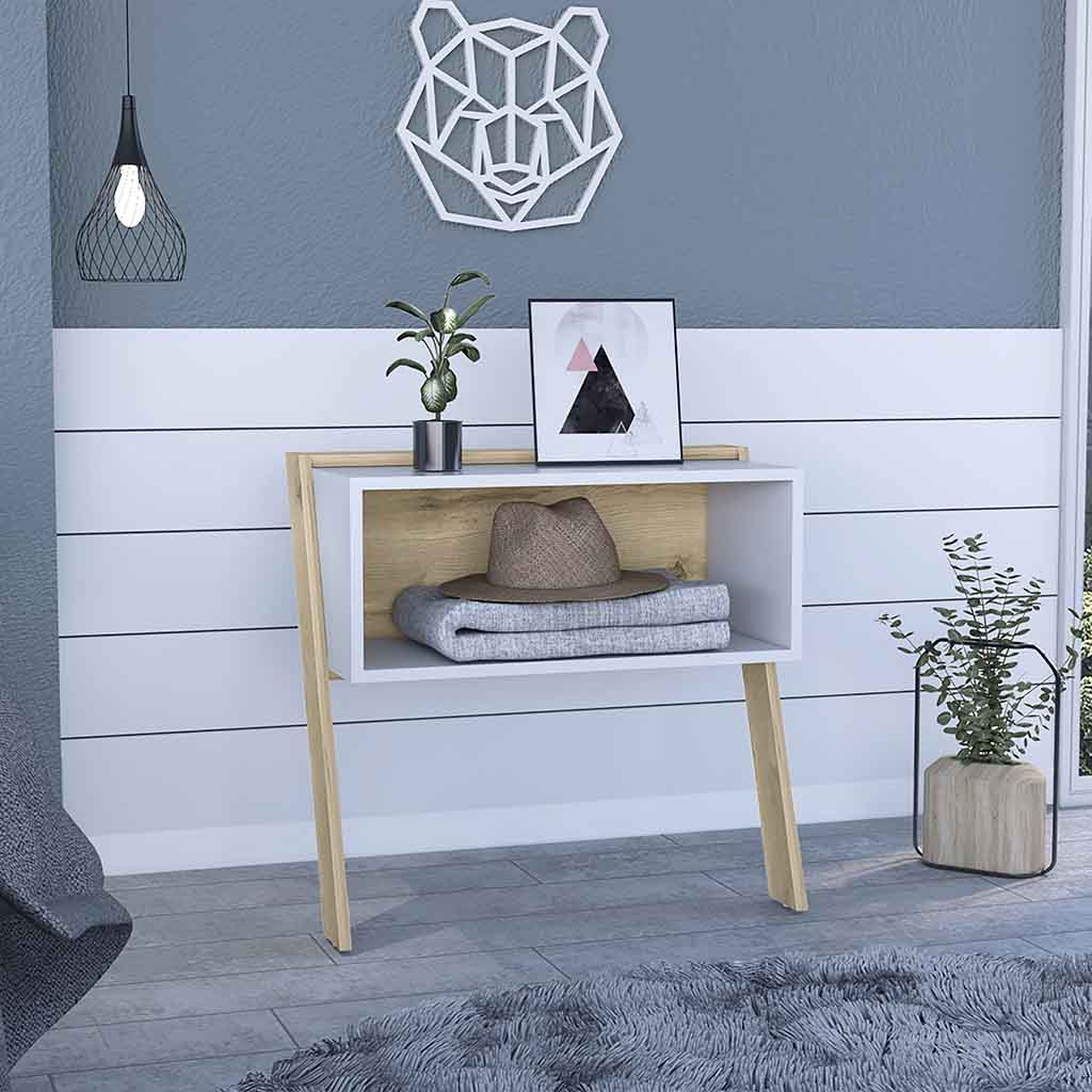The Aira nightstand is very practical if you want your home to look organized, it will provide you with enough space for all your things to be in their place, it has an open shelf, a top and two legs, it can be used to store books, notebooks or anything you need to have at hand. Designed with elegant Light Oak-White manufactured wood.