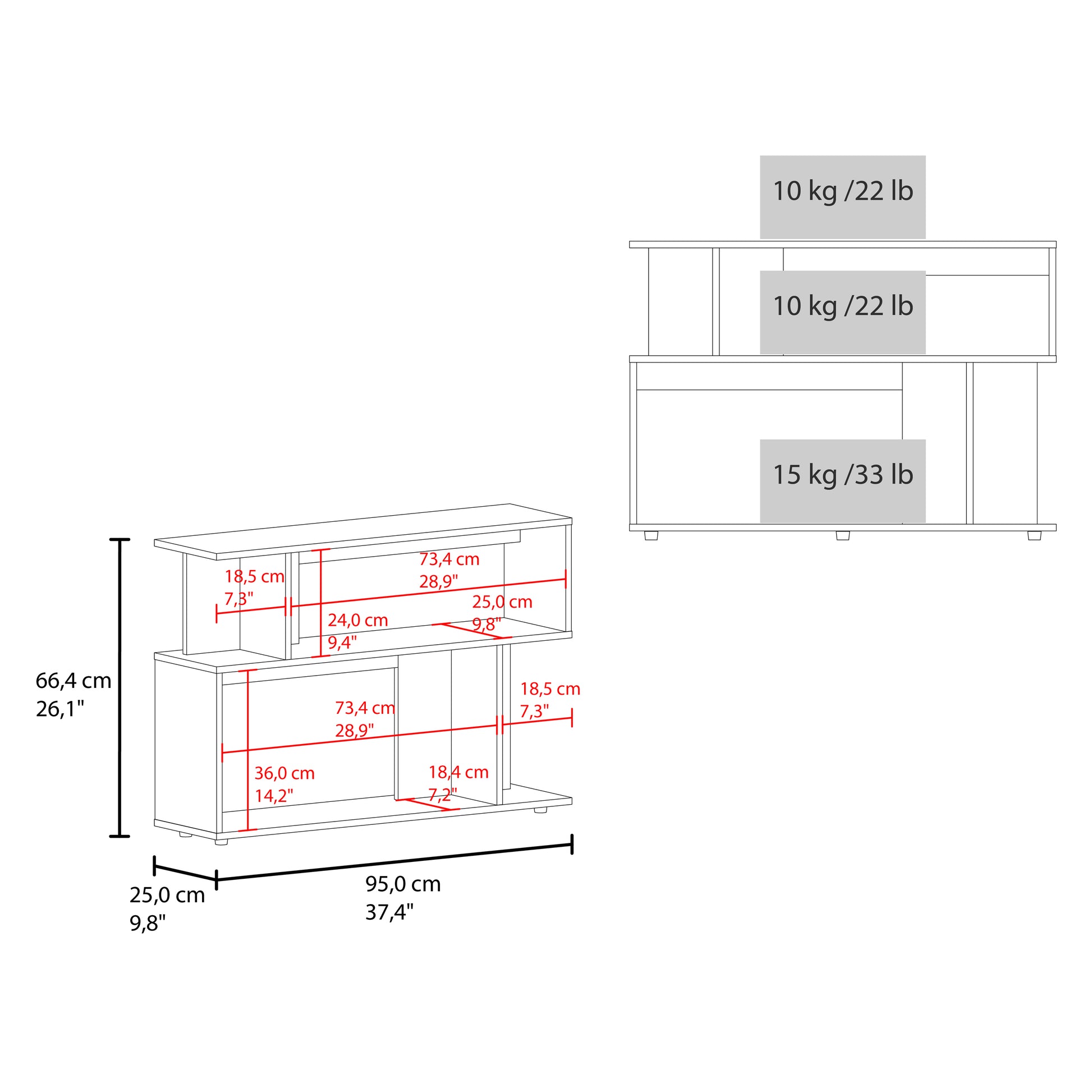 Asymmetrical Sofa SideTable with Open Storage Shelves, A Top Shelf, Modern Accent Style Table for Living Room Or Entryways