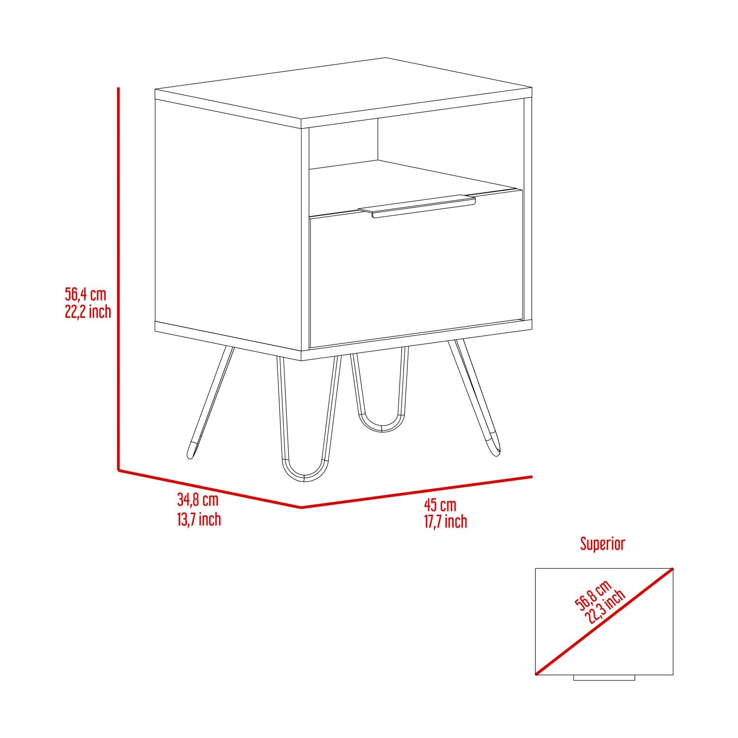 Augusta Nightstand, Single Drawer, Hairpin Legs