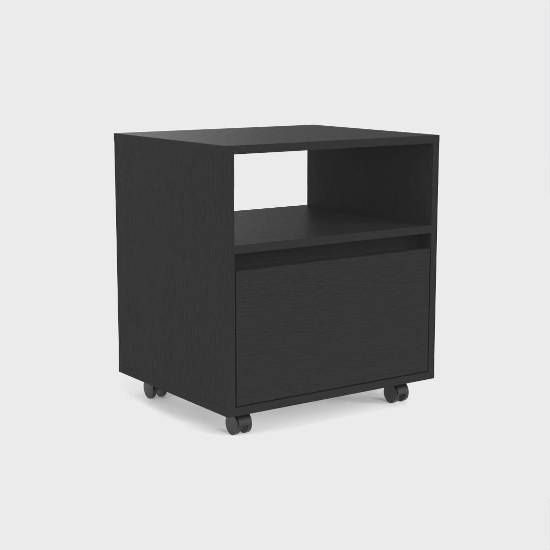 Do you want a nightstand that is stylish and functional? The Austin Nightstand has you covered! It's elegantly designed with a sleek modern look and offers plenty of functionality. Thanks to its casters, it's easy to move around, so you can place it wherever you need it in your bedroom. The spacious drawer (15,5"W X 4,3"H X 13,2"D) is perfect for keeping all your things tidy, and the open shelf provides storage for books or magazines. Plus, the wide top surface offers plenty of space for your essentials. Designed with an elegant black manufactured wood finish.