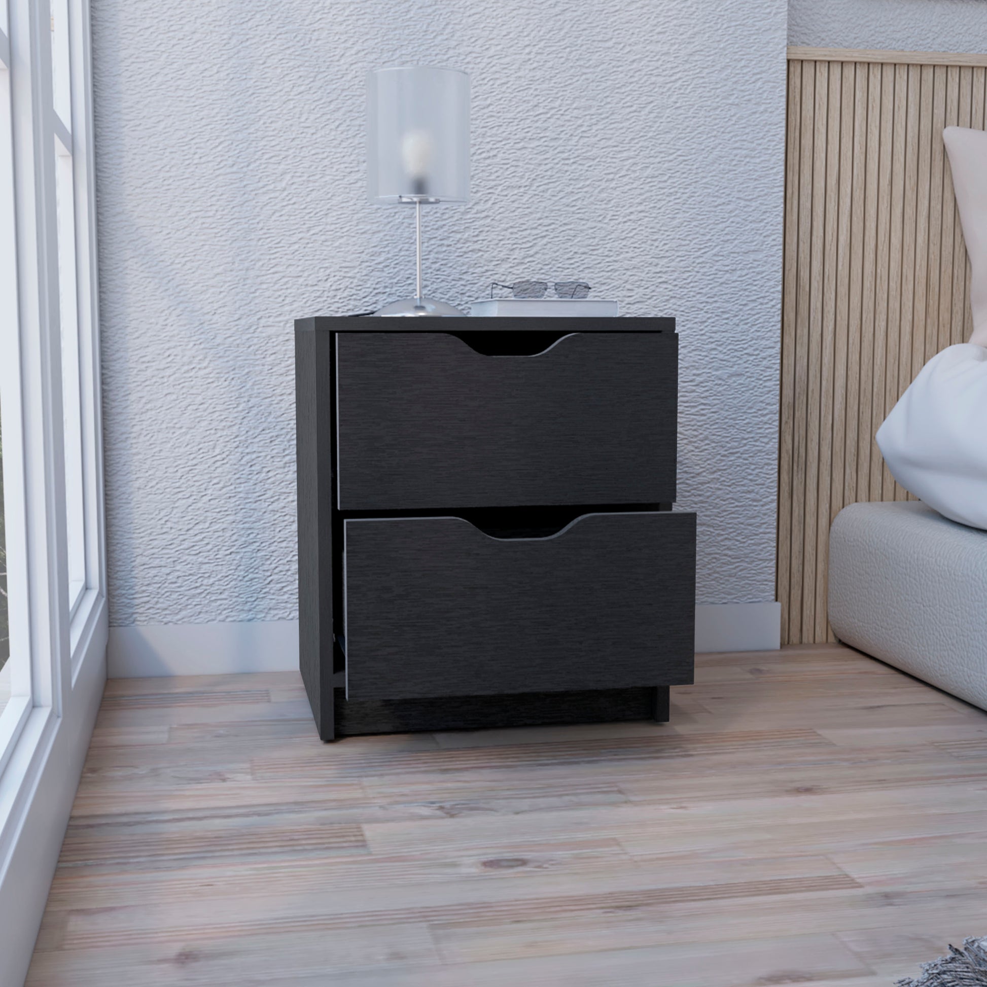 Basilea 2 Drawers Nightstand, Pull Out System