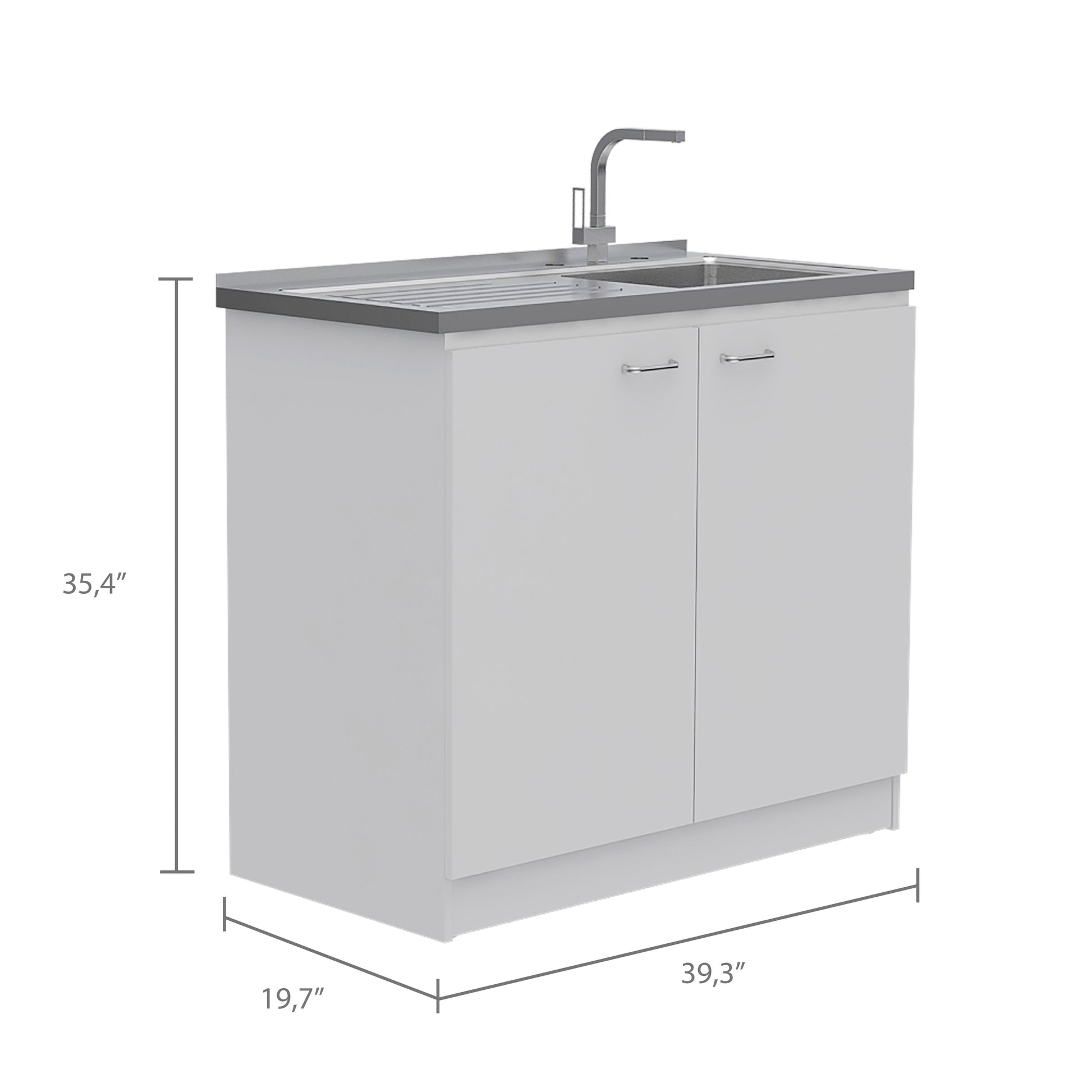 The Napoles Utility Sink features a double-door cabinet with a sink - perfect for extra storage. The countertop is designed in aluminum for strength and durability, and the whole set has a modern and sleek look that will elevate your kitchen's style. Plus, it's ergonomically sized, so it won't take up too much space. ***FAUCET NOT INCLUDED***