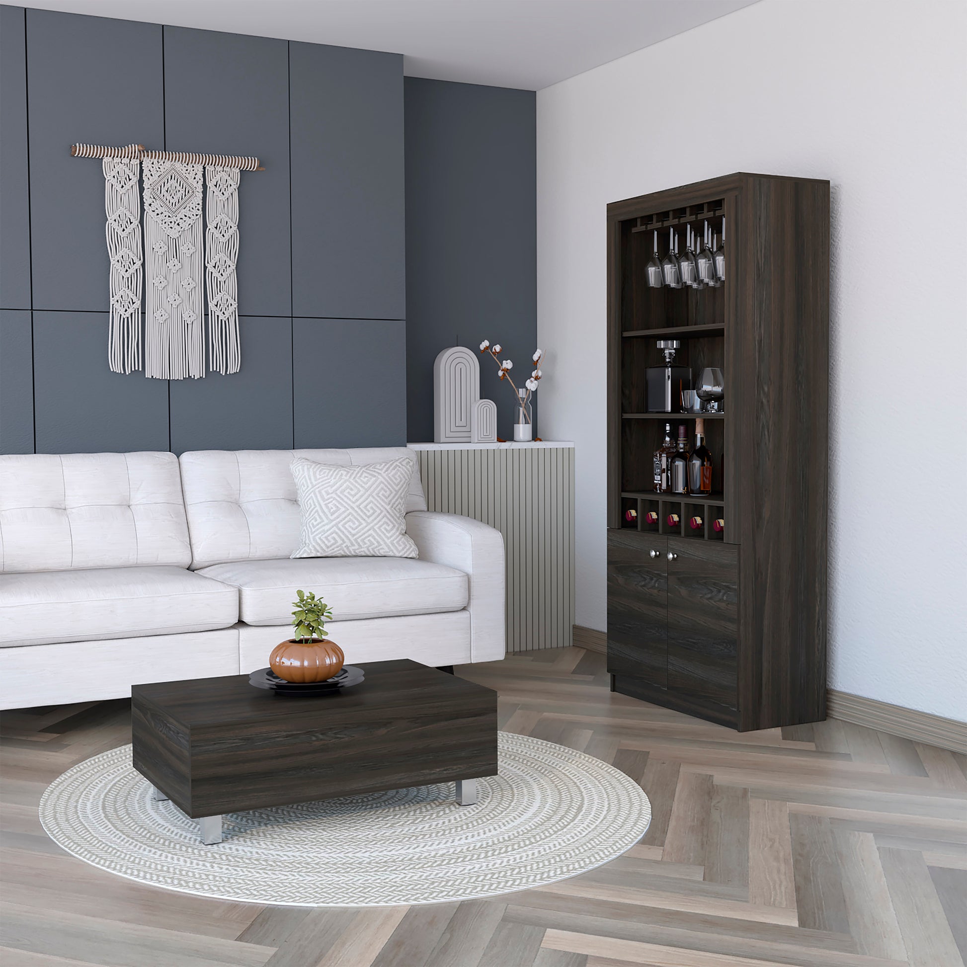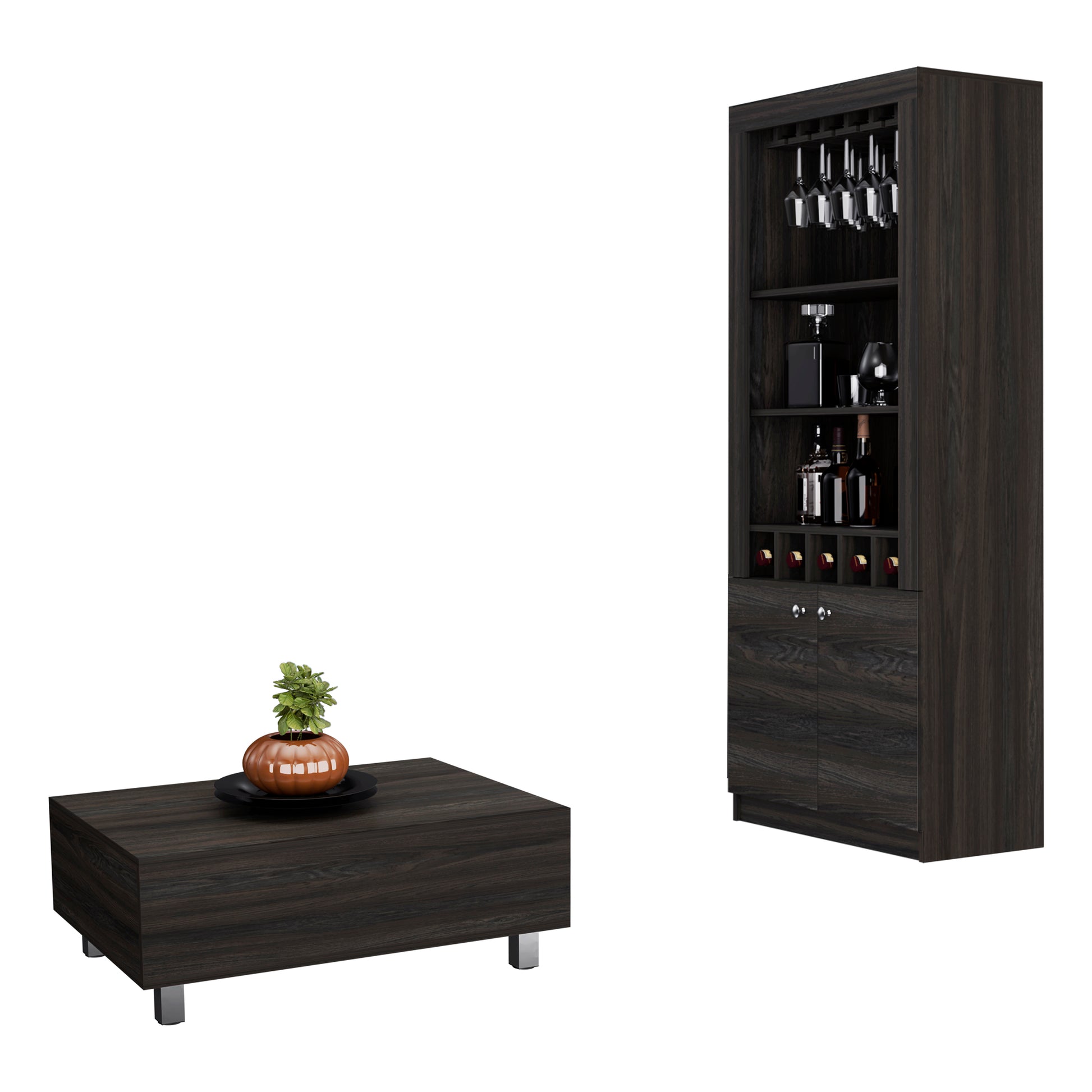 Bradford 2 Piece Living Room Set, Bar Cabinet + Coffee Table, Carbon Espresso Finish