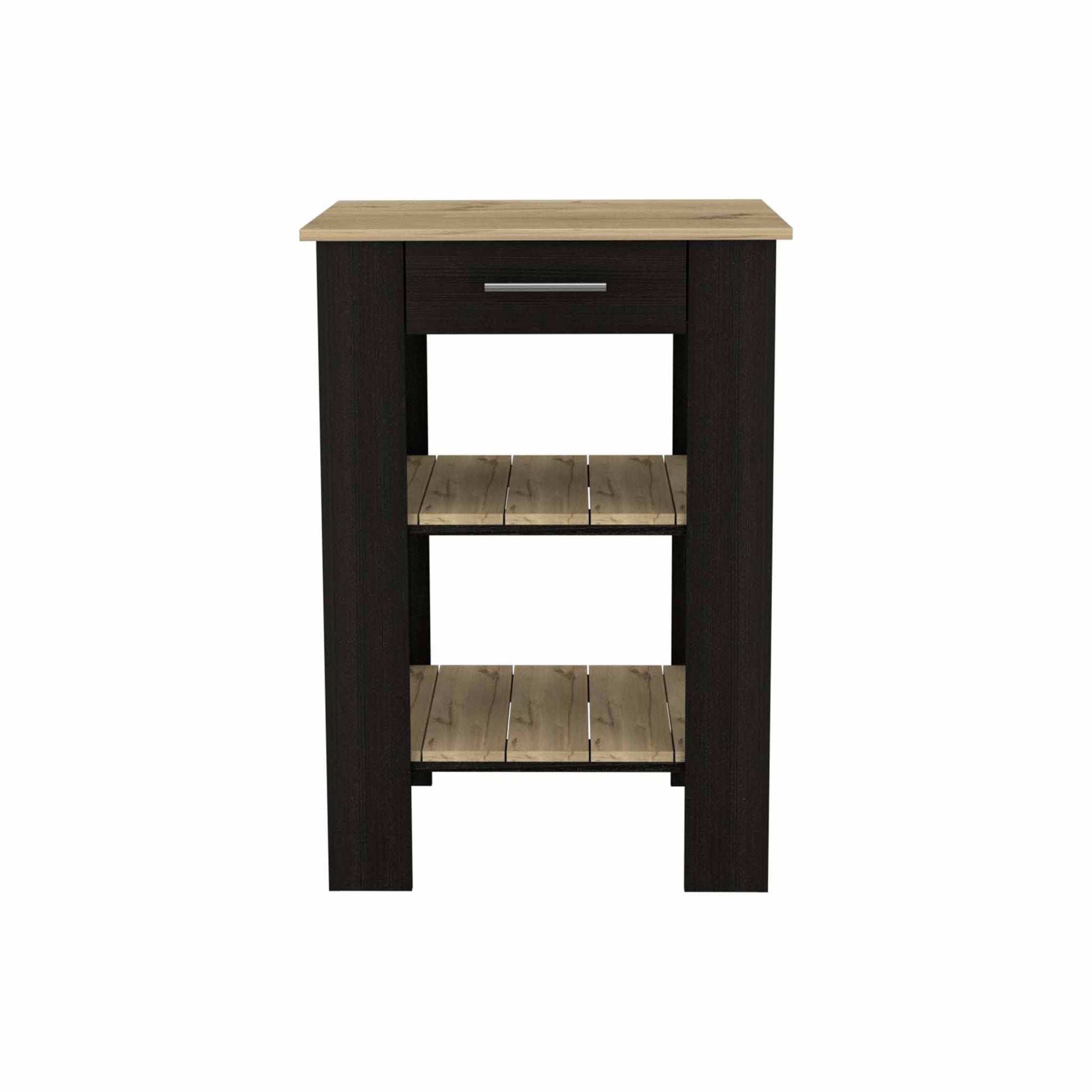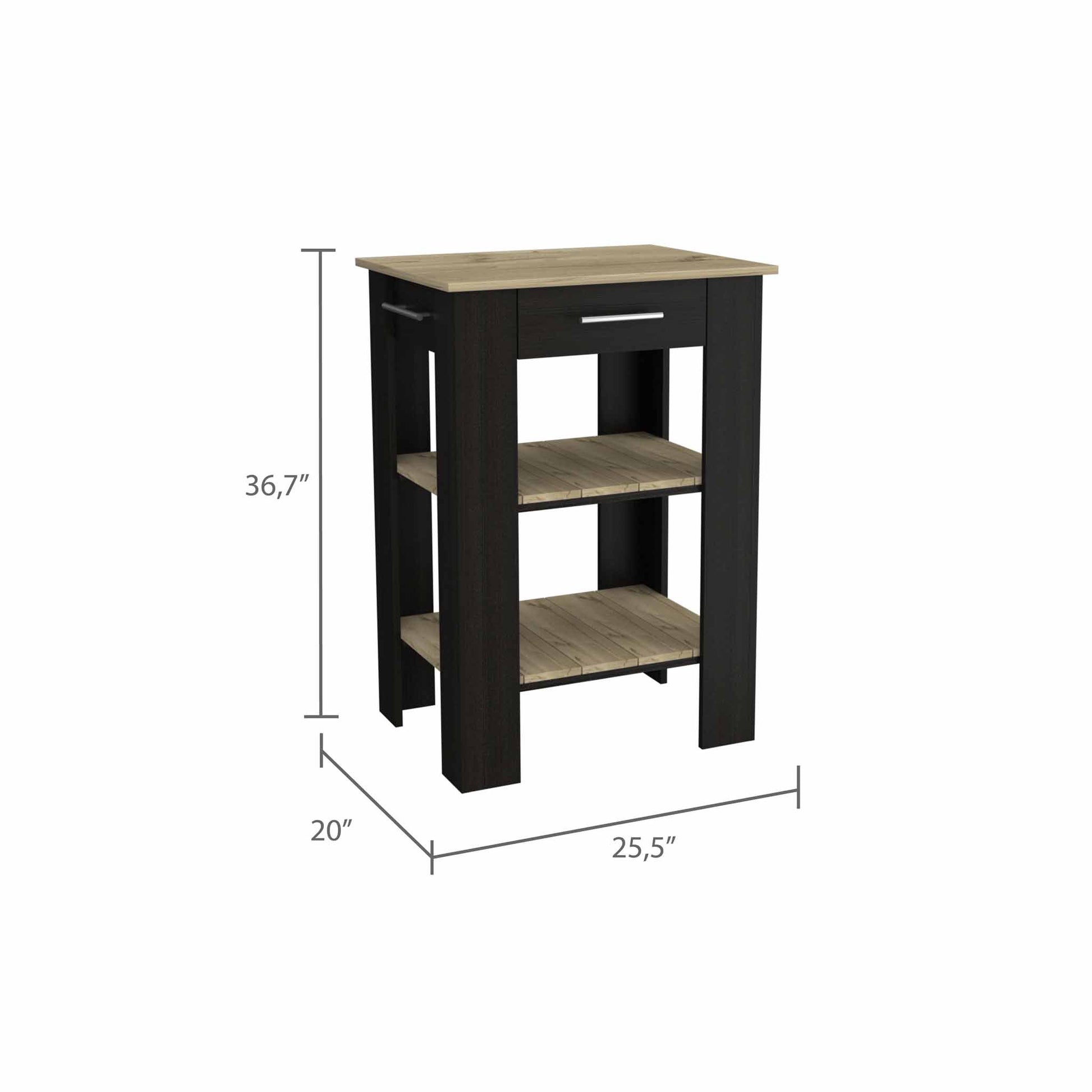 Cala Kitchen Island, our kitchen island and you are a perfect match. Starting with its size that will give you that extra space you were looking for without getting in the way. It features Perfect for any space, Front Drawer, two open shelves located in the middle and bottom, Towel Rack, and a Modern and elegant design. Designed with elegant Black - Light Oak, White - Light Oak Manufactured Wood.