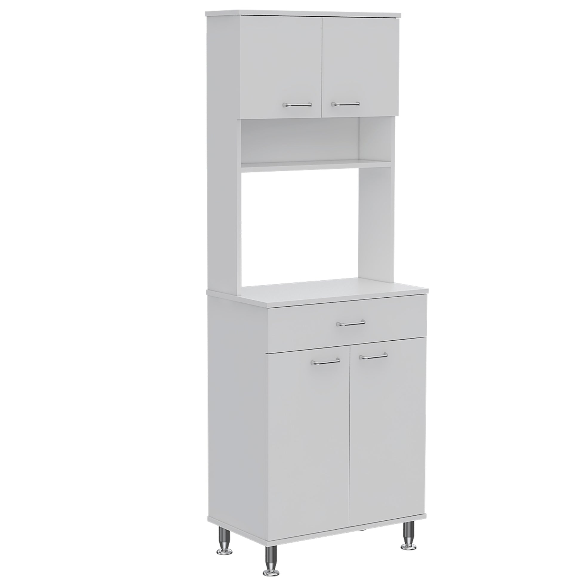 If you're looking for a perfect place to put your microwave, this pantry is perfect! It includes a surface that fits perfectly in your microwave, double two-door cabinets with interior shelves, and an ample drawer (3,2"H X 19,9"W X 11,2"D). The Della 60 Pantry is also perfect for keeping all your items organized.