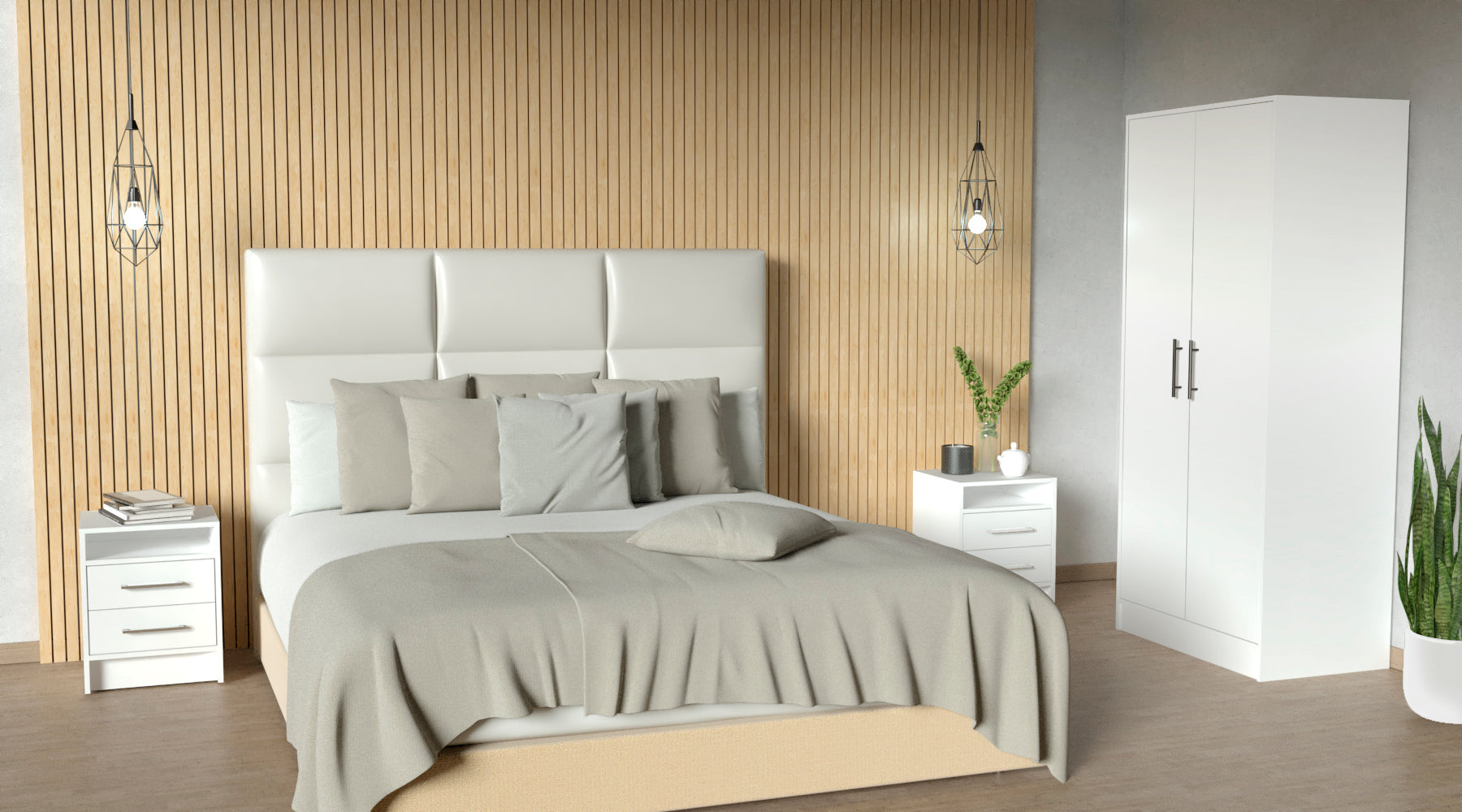 Unlock the hidden potential of your room with the Cresco 3 Piece Bedroom Set. This captivating ensemble, adorned with a sleek white manufactured wood finish, offers the ultimate storage alternatives you dream of. The set includes a versatile armoire and two stylish nightstands, providing the perfect balance of functionality and elegance. Experience optimal storage with the Ambery 180 Armoire. Enhance your organization and style with this functional and stylish armoire. This ample piece features double doors with internal storage, a hanging rod for garments, a top storage shelf, and a lower drawer 20.6"W X 4.9"H for added versatility. The Eter Nightstand is a compact yet spacious addition to your bedroom. Designed with a convenient open storage shelf measuring 14.5"W X 3.2"H and two ample drawers at 12.3"W X 3.9"H, it provides significant storage space. Its stylish handles add a touch of elegance, while the spacious top surface is the perfect platform for your decor.