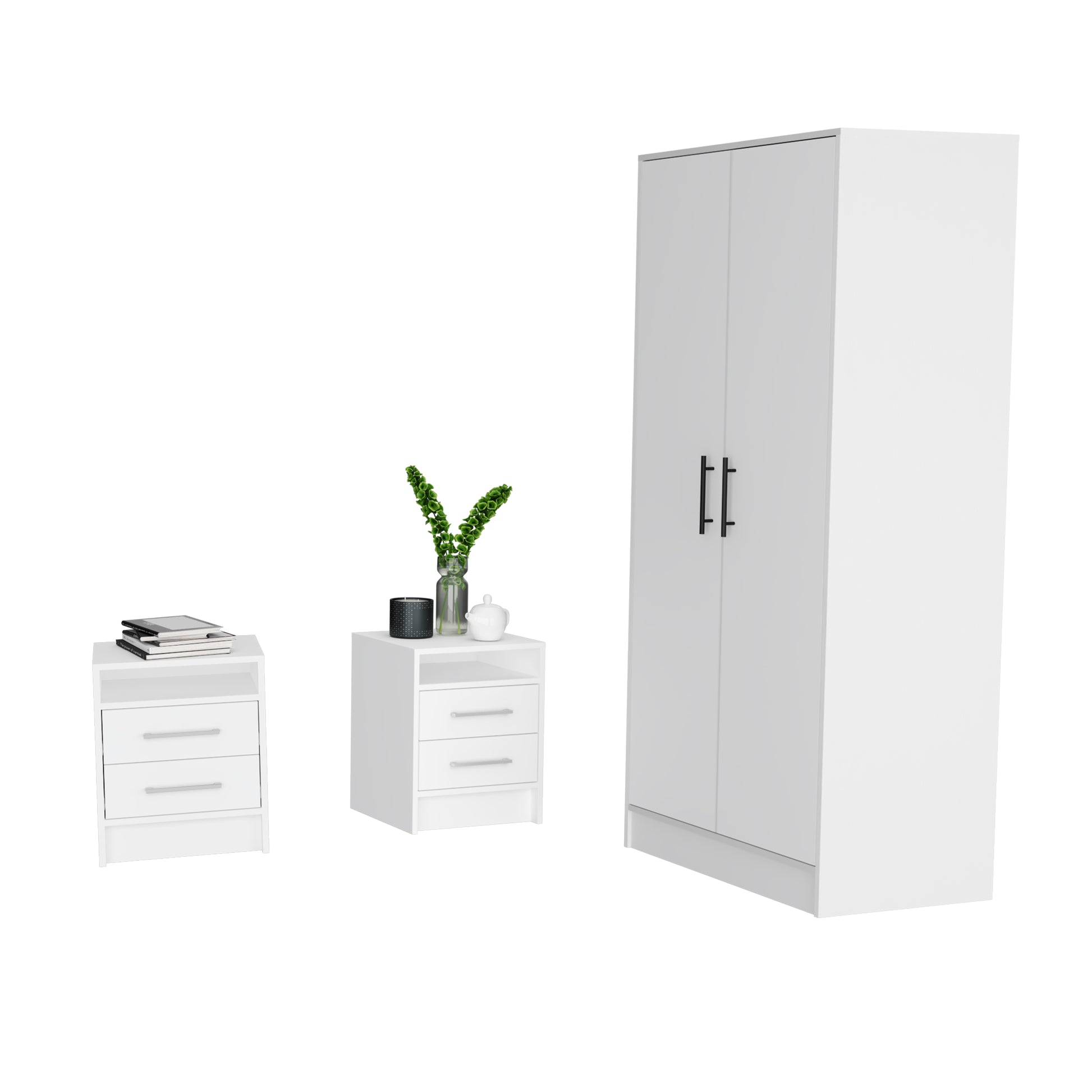 Cresco 3 Piece Bedroom Set, Armoire + Nightstand + Nightstand, White Finish