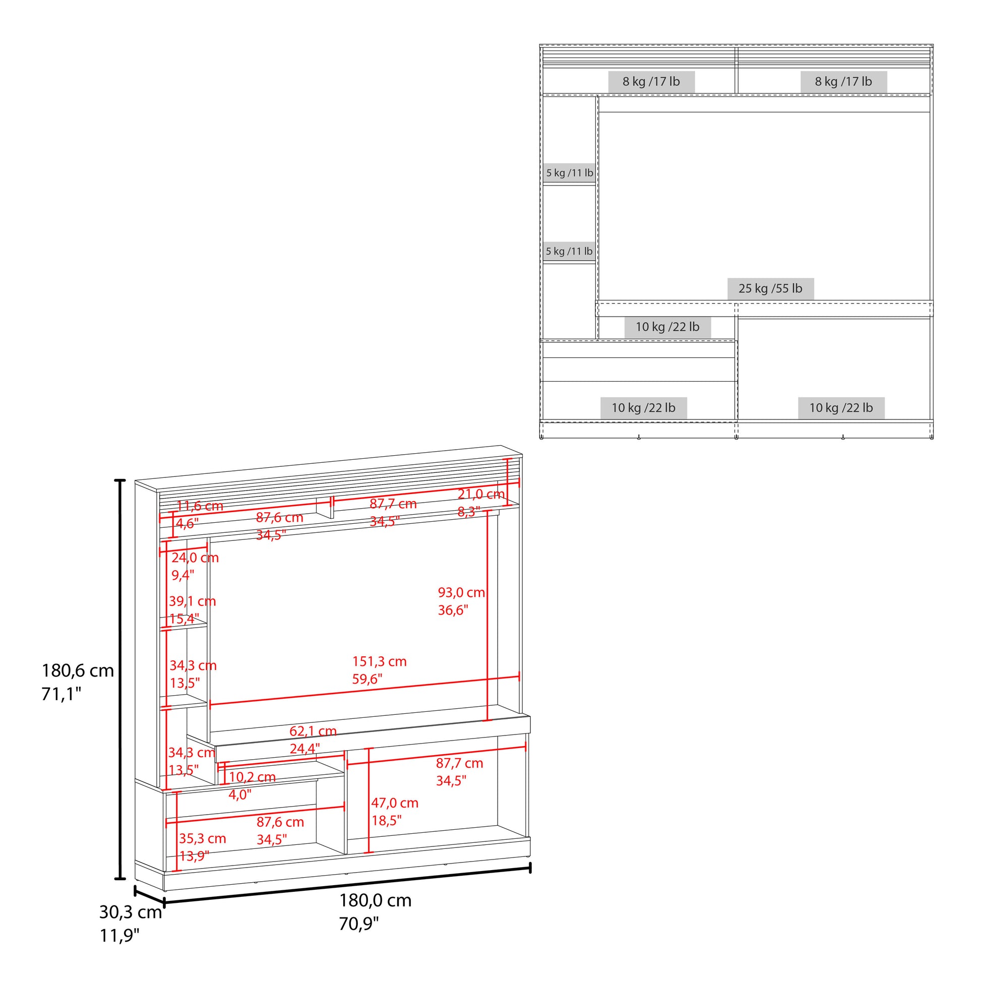 - Central TV Space: Accommodates flat-screen TVs up to 59" wide by 36" high.