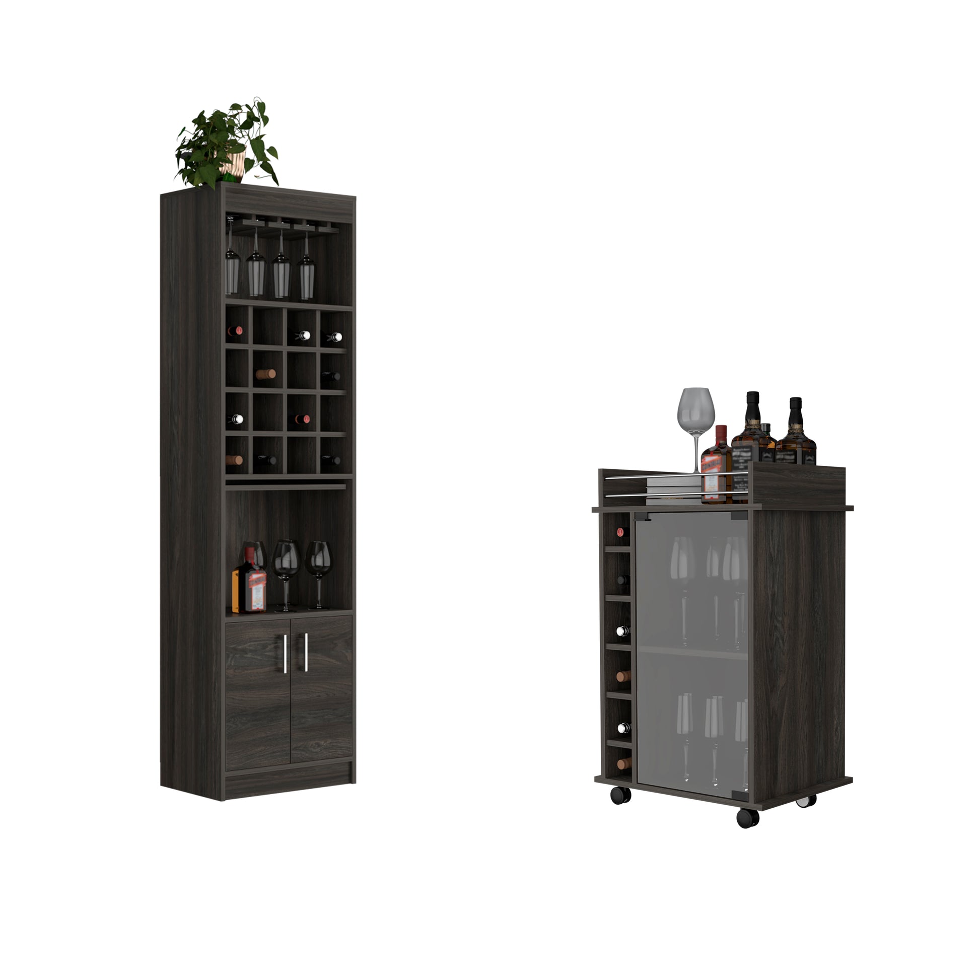 Dothan 2 Piece Living Room Set, Bar Cabinet + Bar Cart, Carbon Espresso Finish
