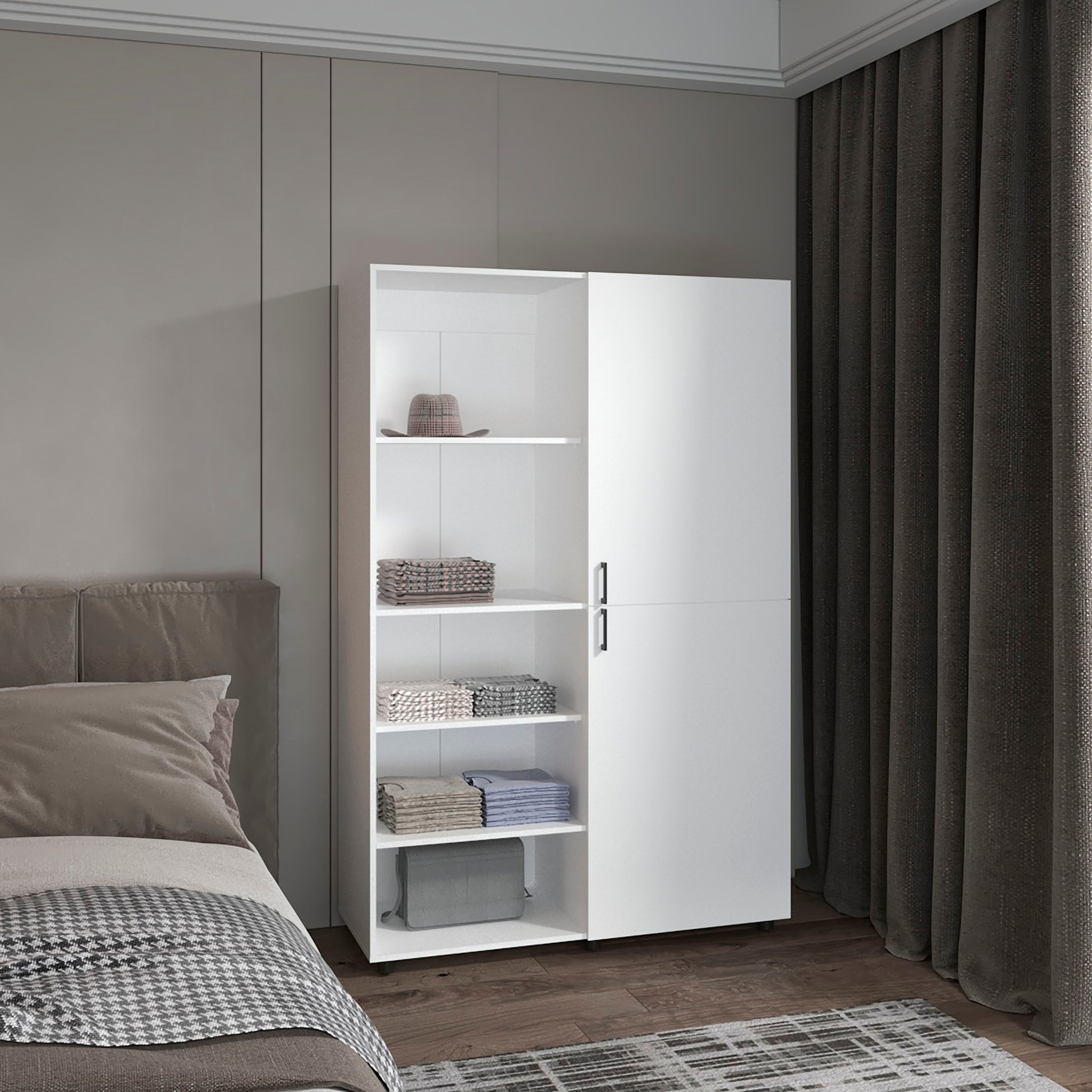 Eco High One Door Freestanding Armoire With Hanging Rod And Interior Shelves, Compact Bedroom Wardrobe