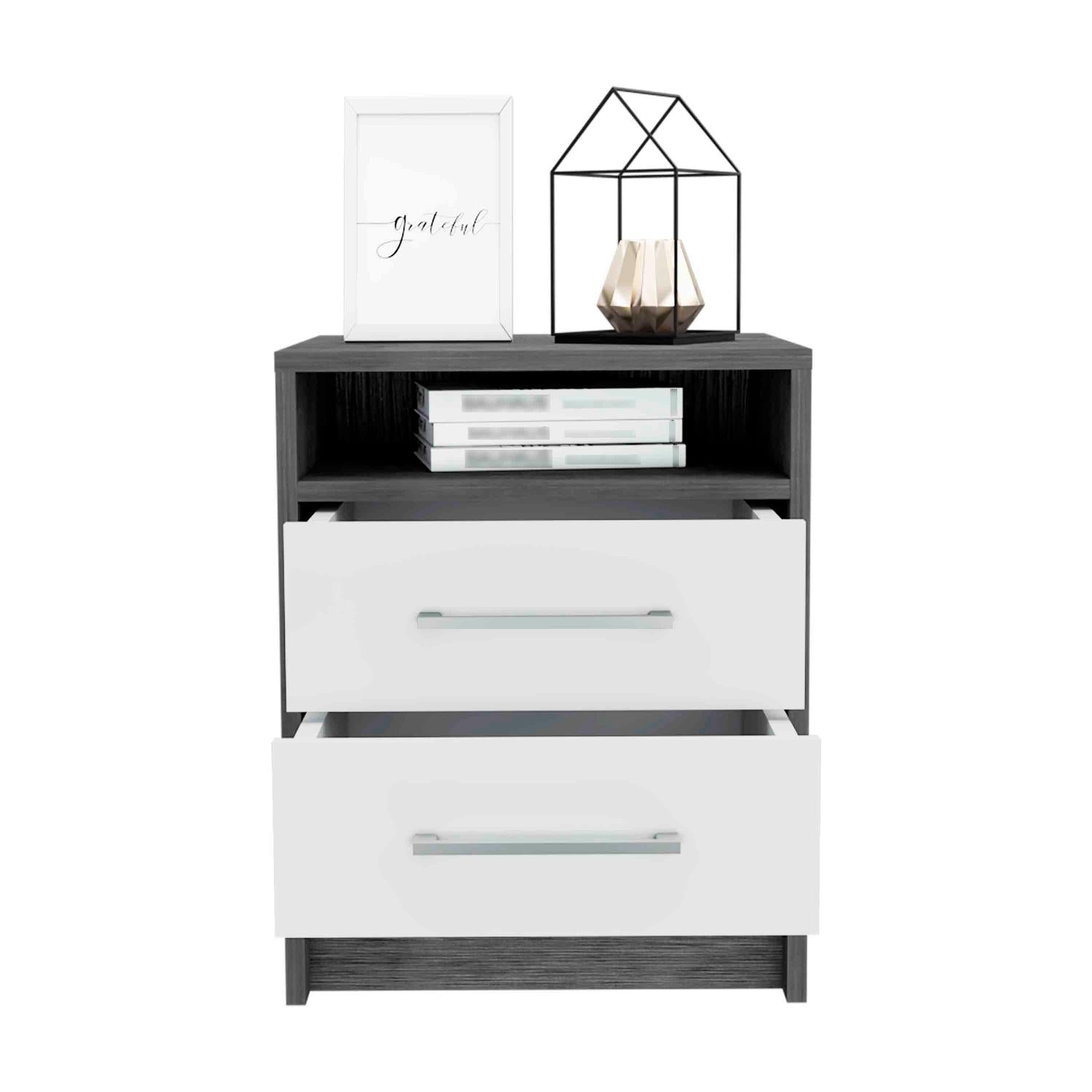 Eter Nightstand Minimalist Modern Style, Superior Top Shelf, One Open Storage Shelf And Two Drawers, Modern Bedside Storage
