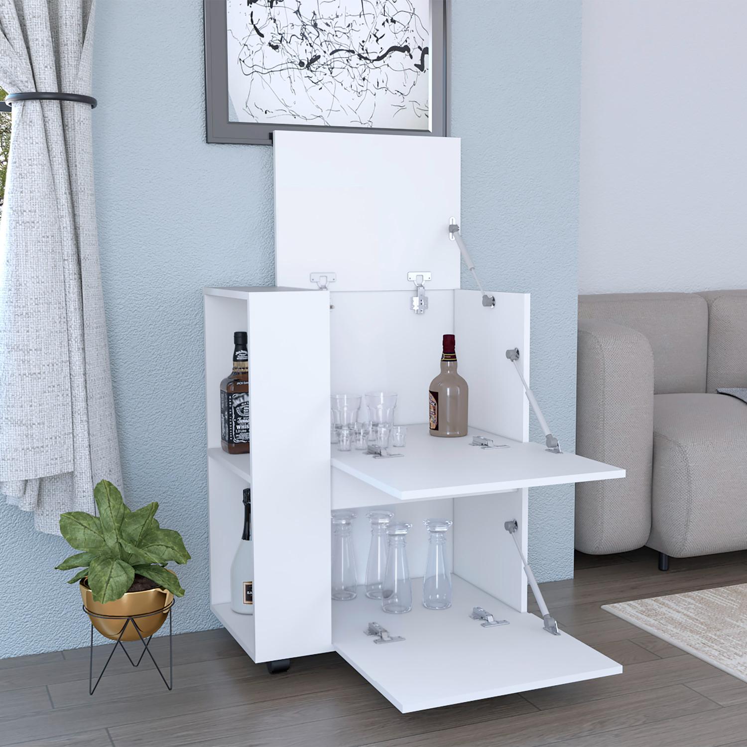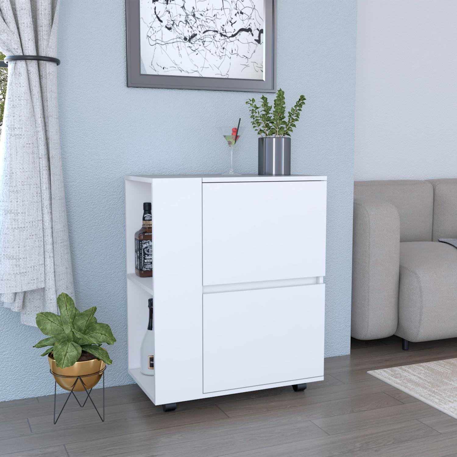 Glasgow Bar Cart Two Pull-Down Door Cabinets And Two Open Shelves