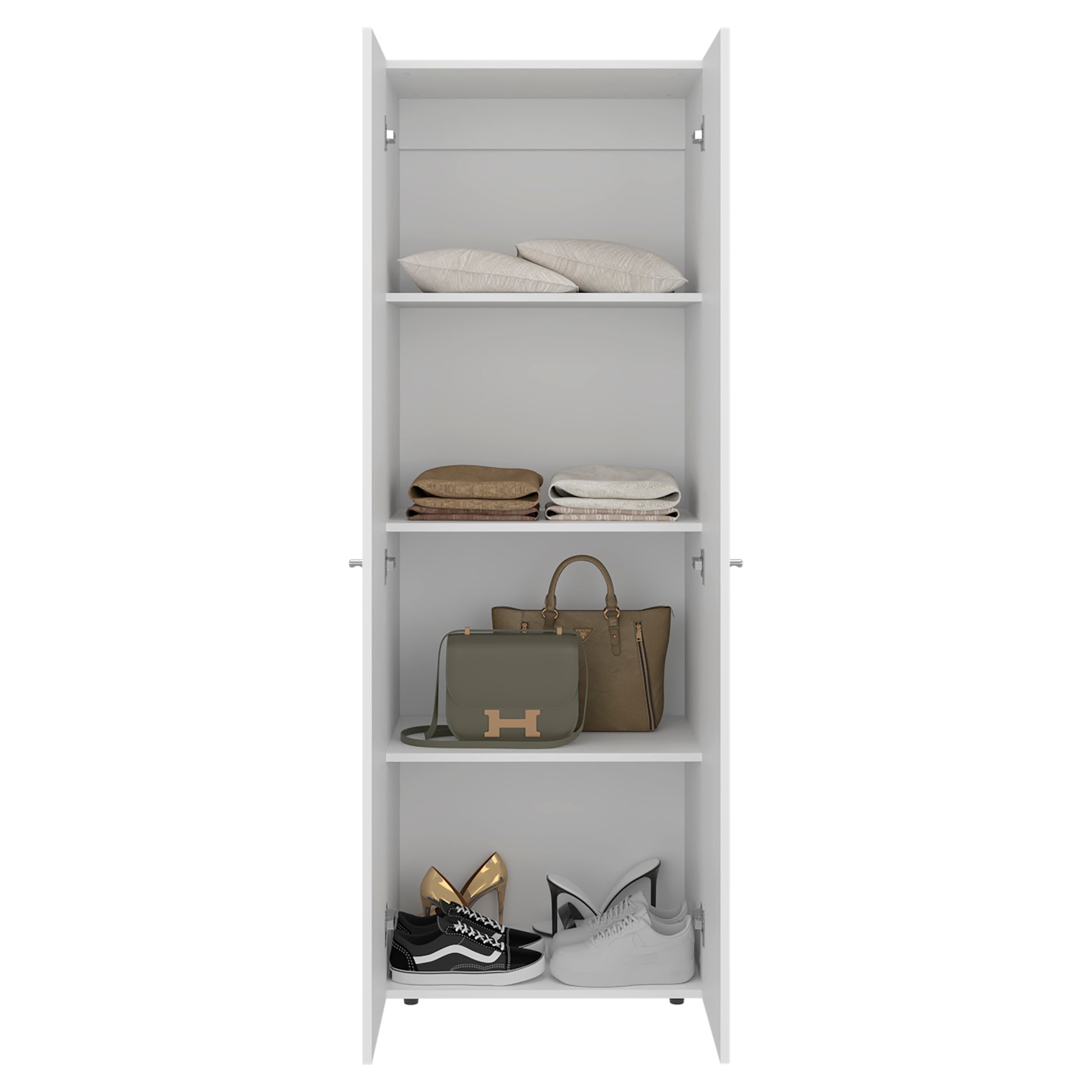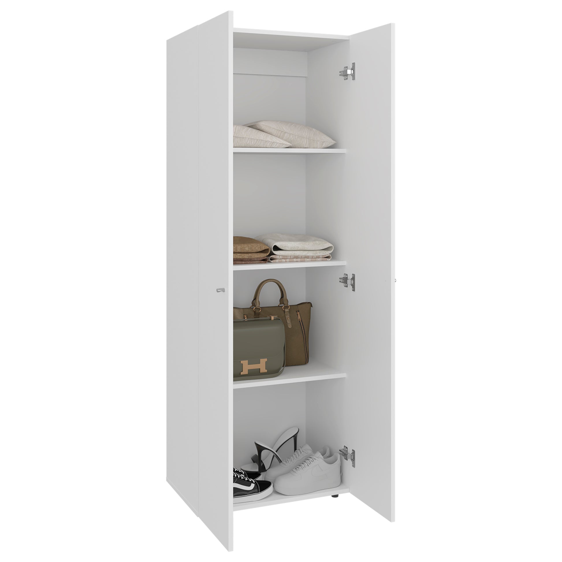 Home 2 Door Closet System, Four Fixed Shelves, Compact Wardrobe for Bedroom Organization, Laundry Room Organization, Utility Room Organization, Freestanding Storage Furniture