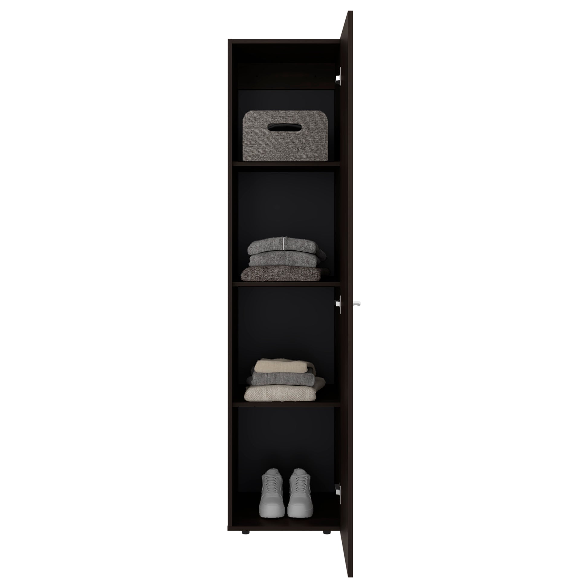 This TuHome Linen Cabinet provides a streamlined storage solution designed to keep essentials organized while maintaining a clean, uncluttered look. Its tall vertical format makes efficient use of available space, offering ample storage capacity without occupying excessive floor area. Ideal for bathrooms, bedrooms, or laundry rooms, this cabinet adapts easily to a variety of household needs. The single-door design allows items to be stored discreetly, helping protect linens, towels, or personal belongings from dust while keeping them neatly concealed. Its upright structure supports easy placement in narrow spaces, making it a practical option for apartments, compact homes, or rooms where efficient organization is essential. Designed for everyday functionality, this linen cabinet helps create a more orderly environment by centralizing storage in one accessible location. Whether used for bathroom supplies, clothing accessories, or household essentials, it supports a tidy, well-organized home without visual clutter.