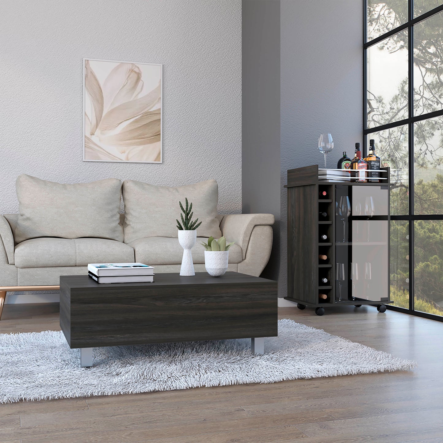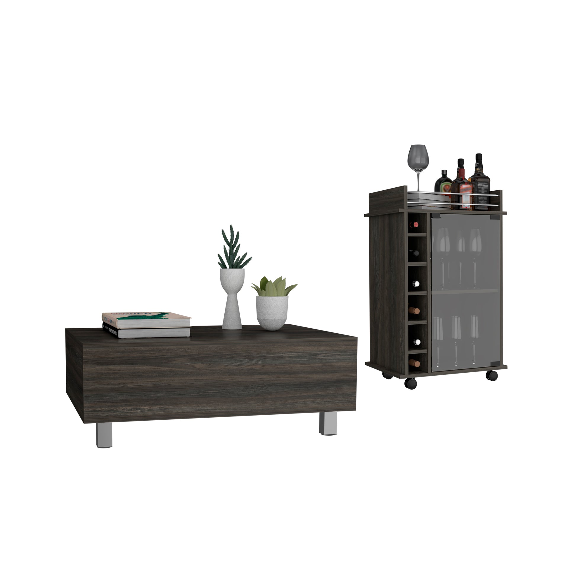 Kinsey 2 Piece Living Room Set, Bar Cart + Coffee Table, Carbon Espresso Finish