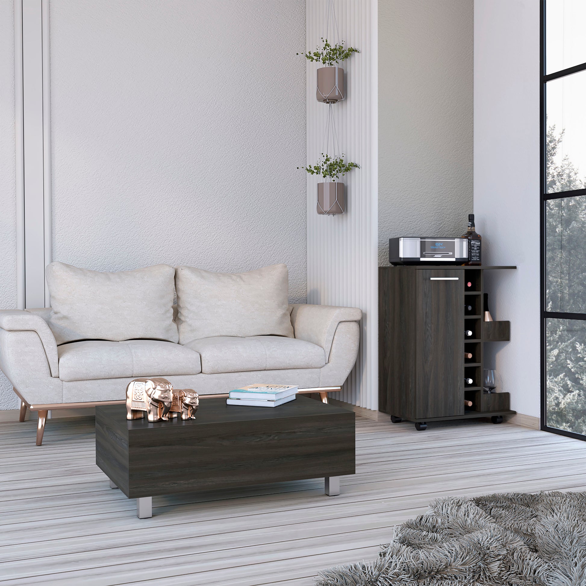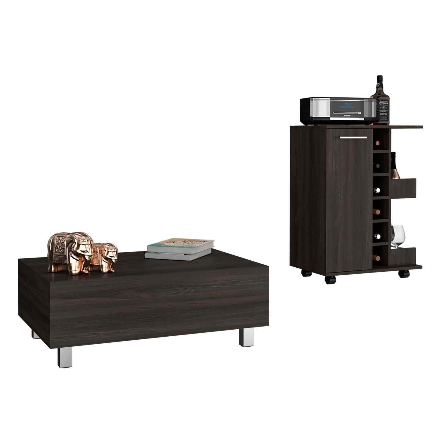 Landers 2 Piece Living Room Set, Bar Cart + Coffee Table, Carbon Espresso Finish