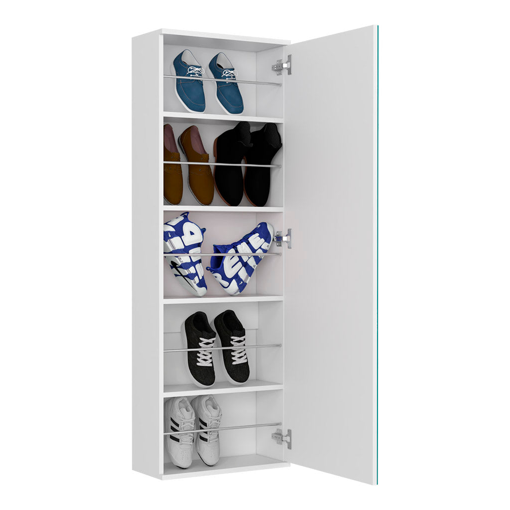 Leto Wall Mounted Shoe Rack With Mirror, Single Door, Capacity For Ten Shoes
