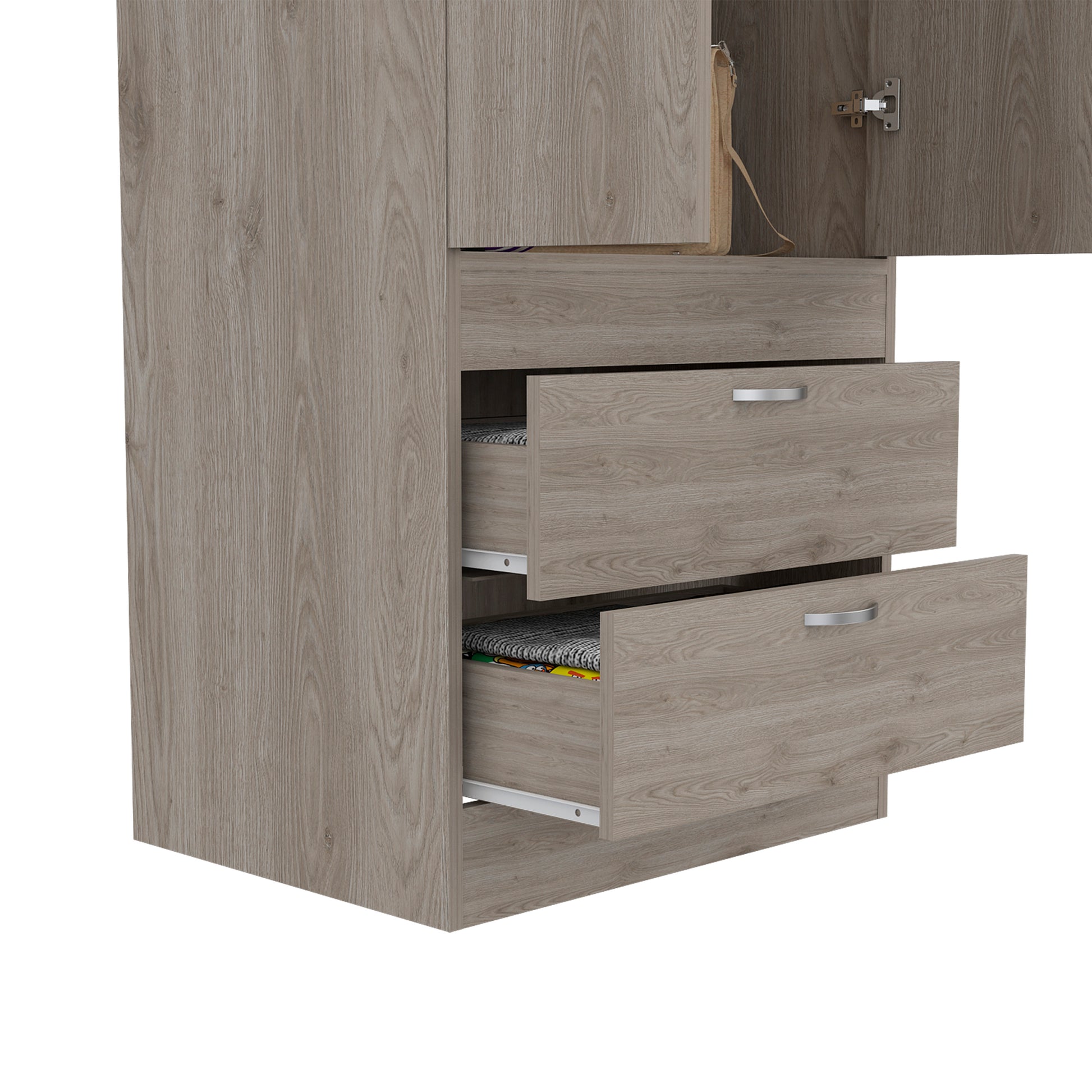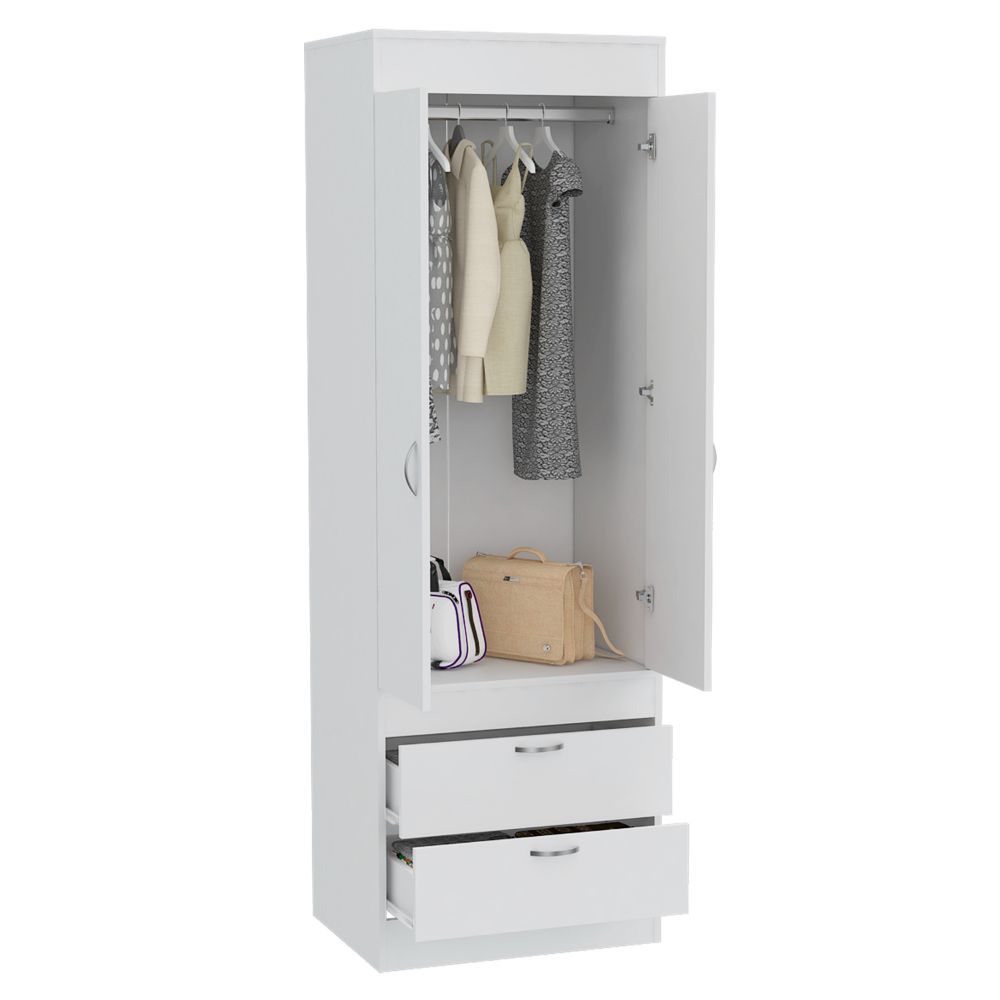 Simone Armoire, Rod, Double Door, Two Drawers, Metal Handles