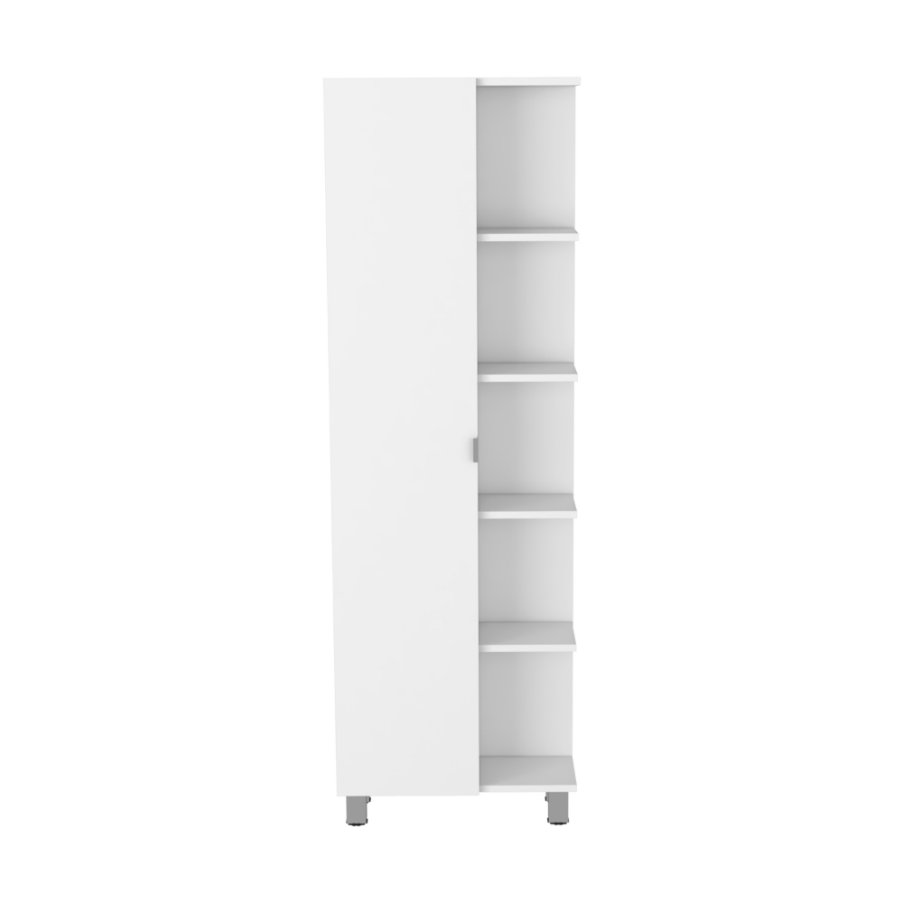 Fiore Linen Cabinet, part of the exclusive Urano collection, this linen cabinet updates the look of any space with a modern style. Includes five shallow shelves and a large covered cabinet giving you plenty of storage options ideal for your bathroom, kitchen, bedroom, or garage. Easy and ready-to-assemble furniture with a full warranty and CARB certification. Designed with elegant light oak, smokey oak, white, black manufactured wood finish.