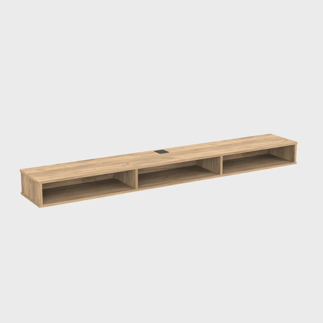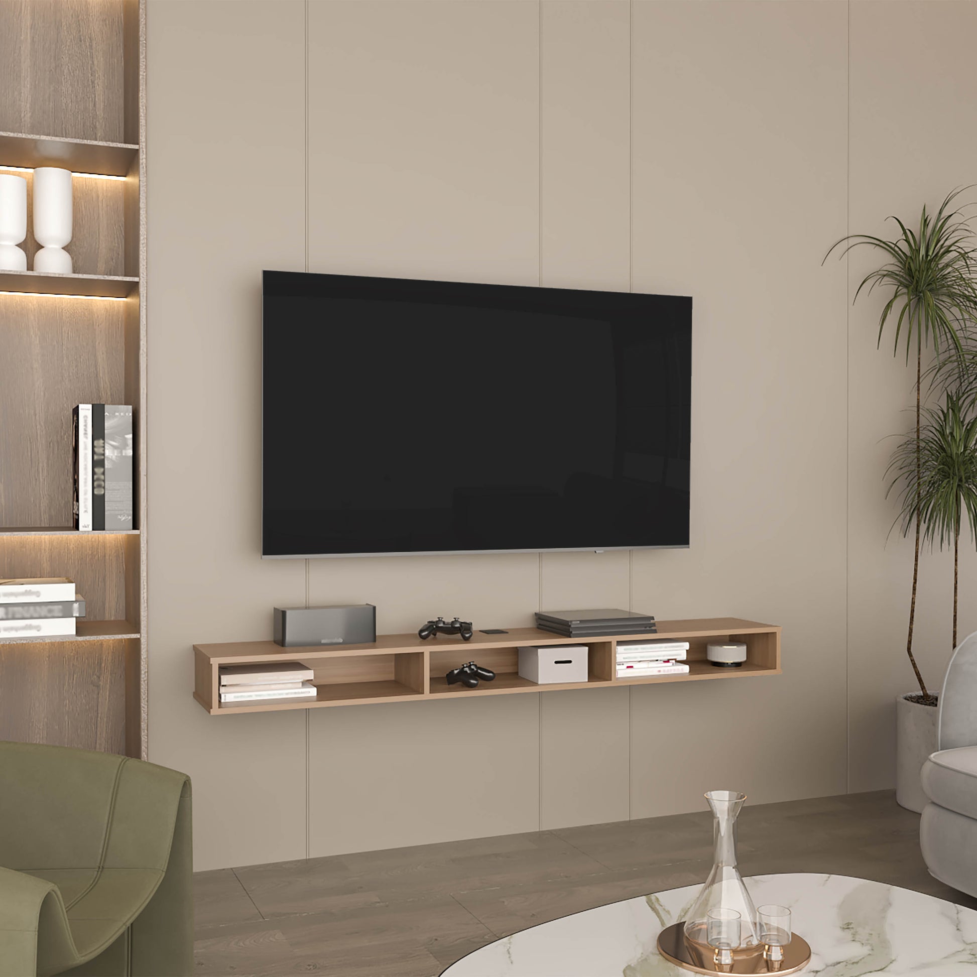 - Three Shelving Spaces: Features three spacious shelves for storing media accessories, books, and decor.