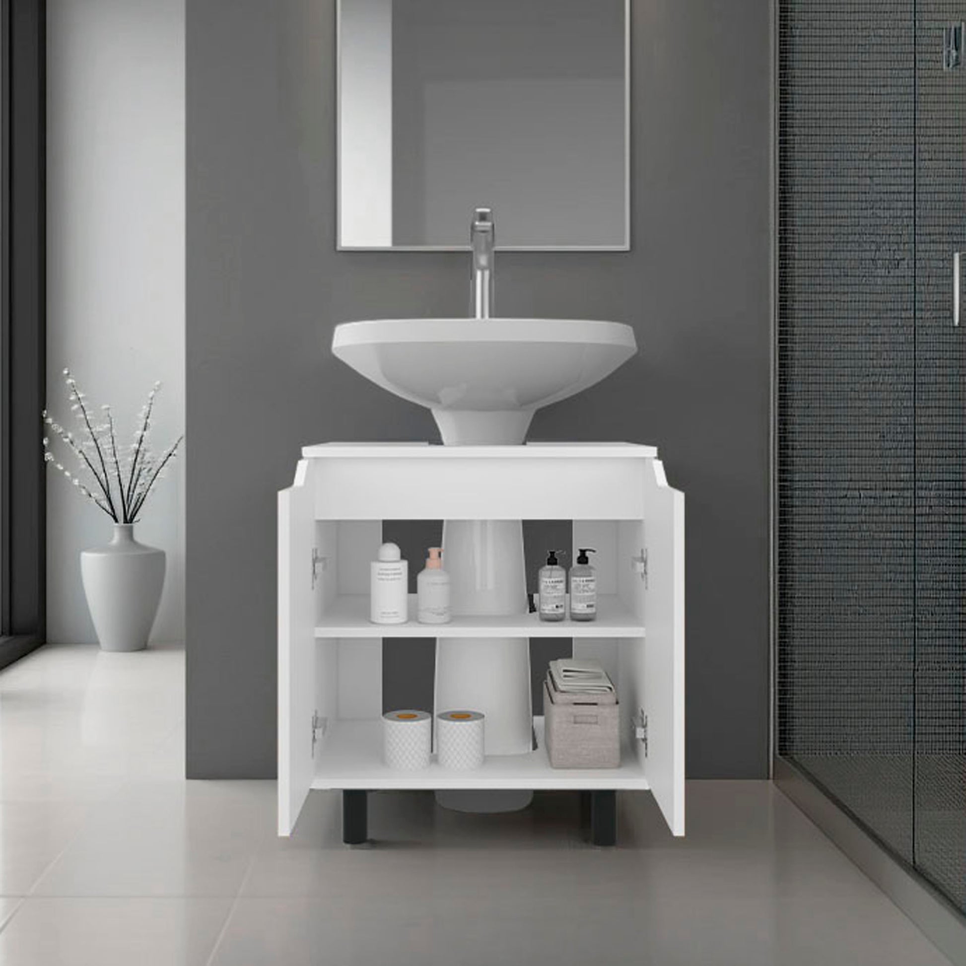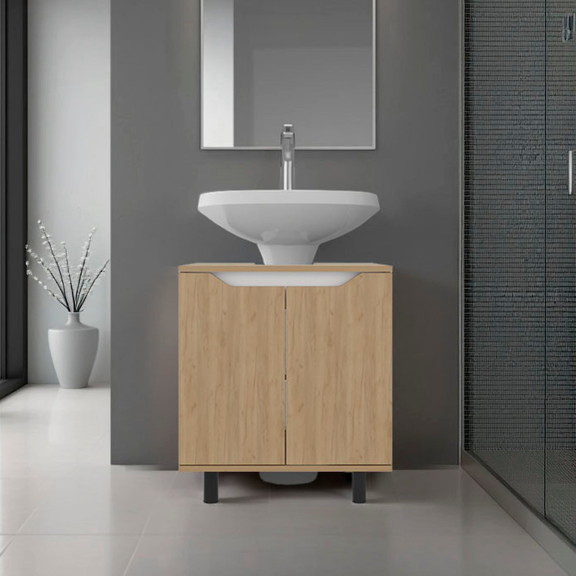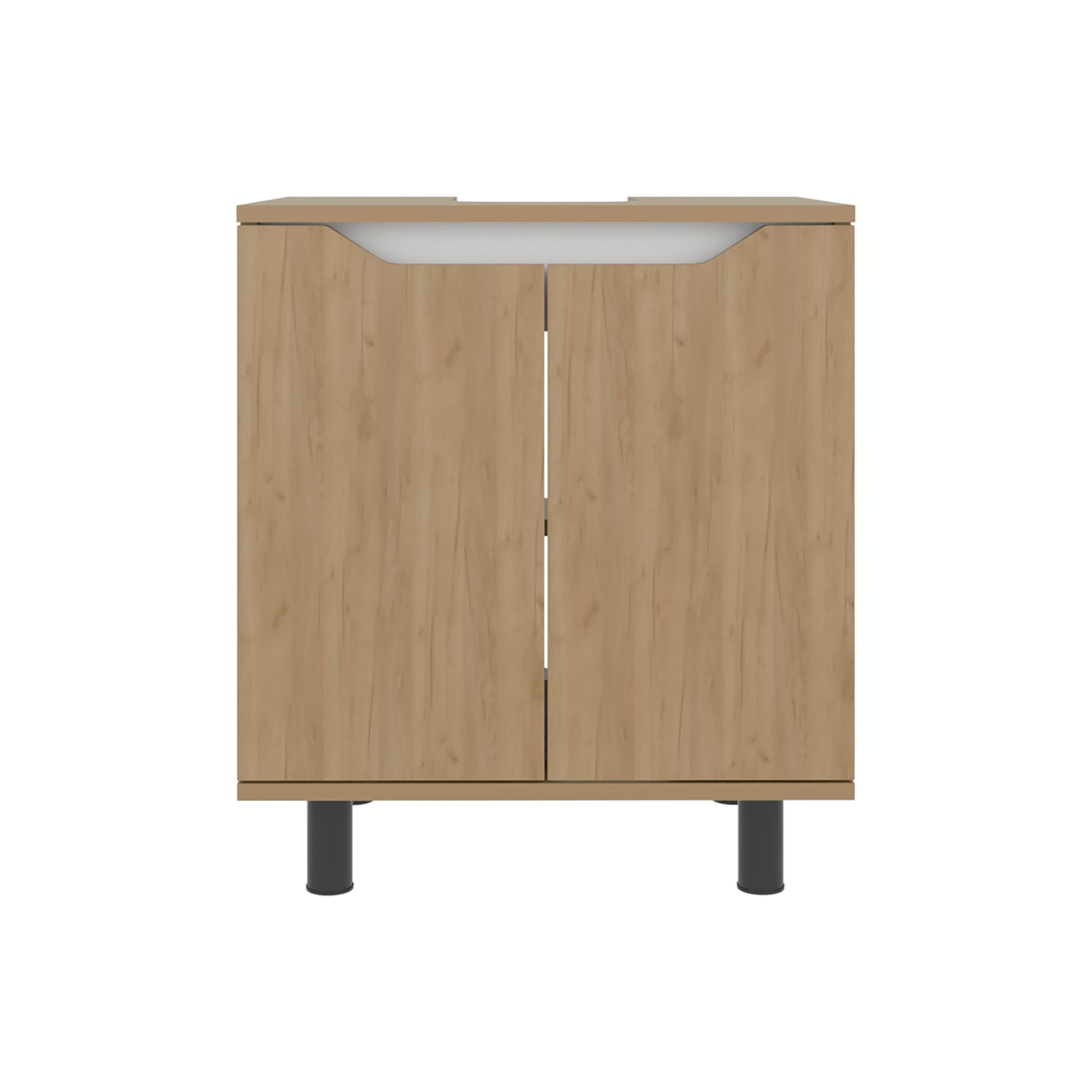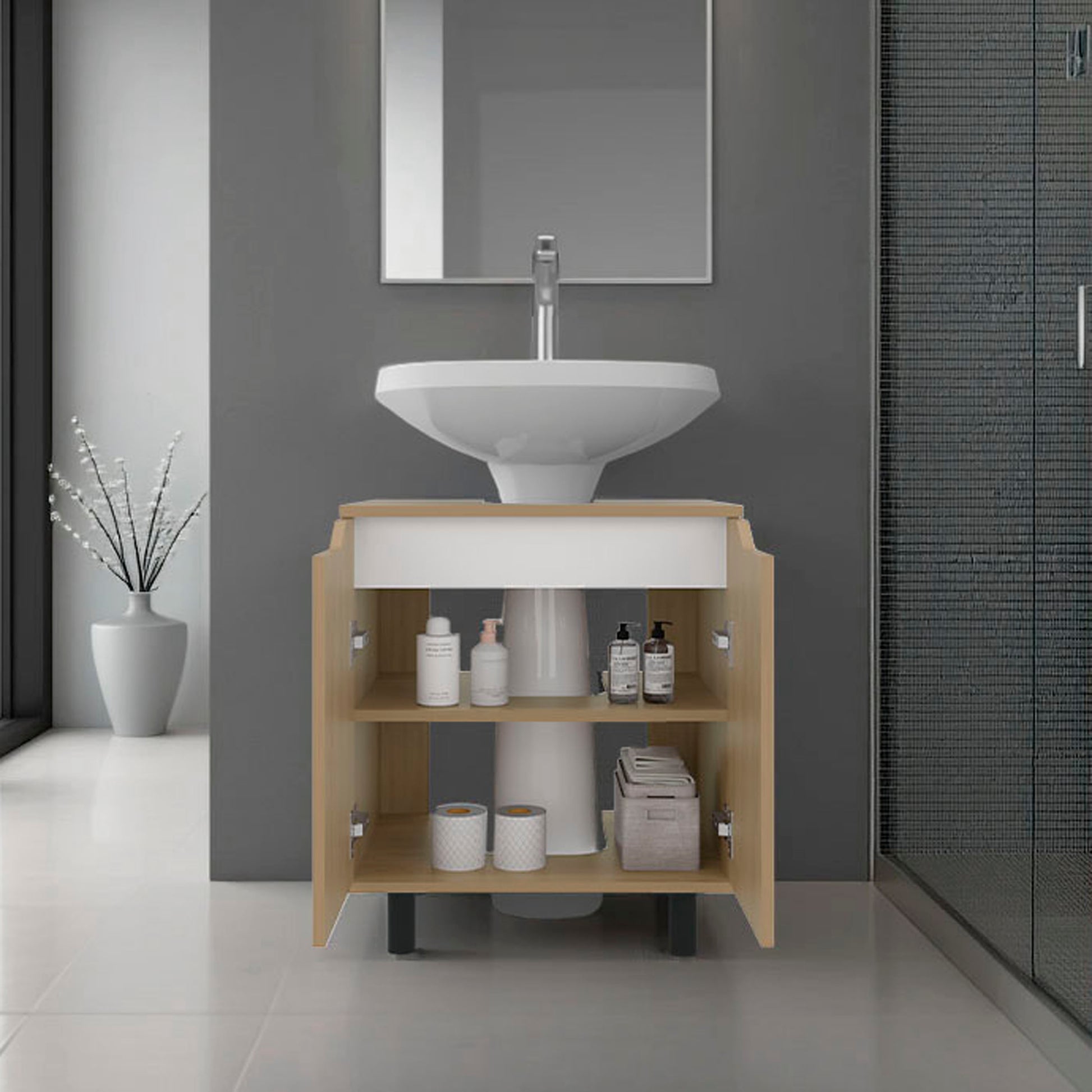 The Marlo Under Sink Cabinet is a smart storage solution for bathrooms with limited space. Featuring a central cut-out to accommodate sink plumbing, this cabinet combines concealed storage behind double doors with an open lower shelf—ideal for towels or décor. Its compact 22-inch width and clean-lined design make it a stylish and practical choice for modern bathrooms, powder rooms, or small guest spaces.
