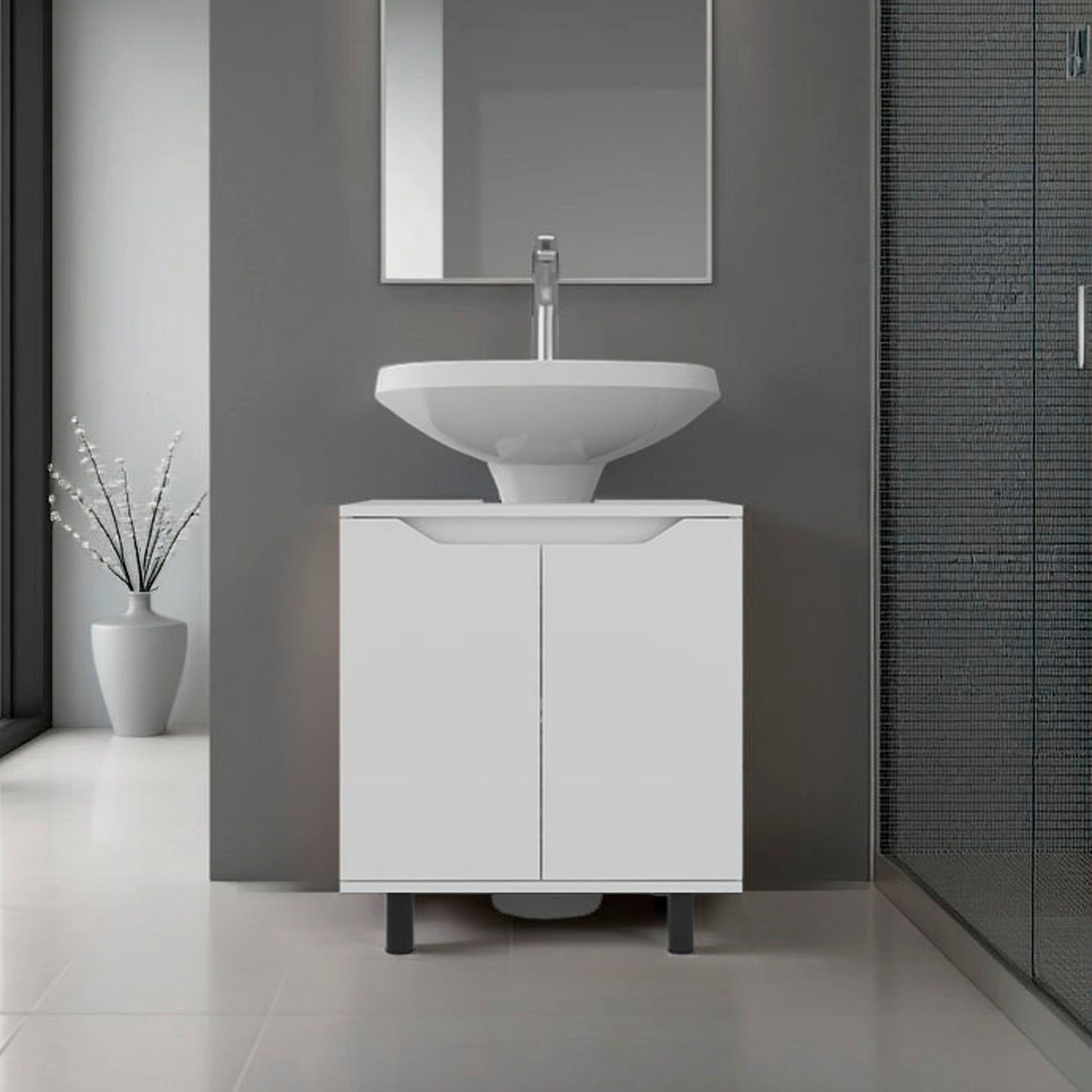Marlo Under Sink Cabinet with Two Doors and Interior Storage Shelves, Cut-Out Back, 22” Wide Freestanding, Modern Bathroom Storage