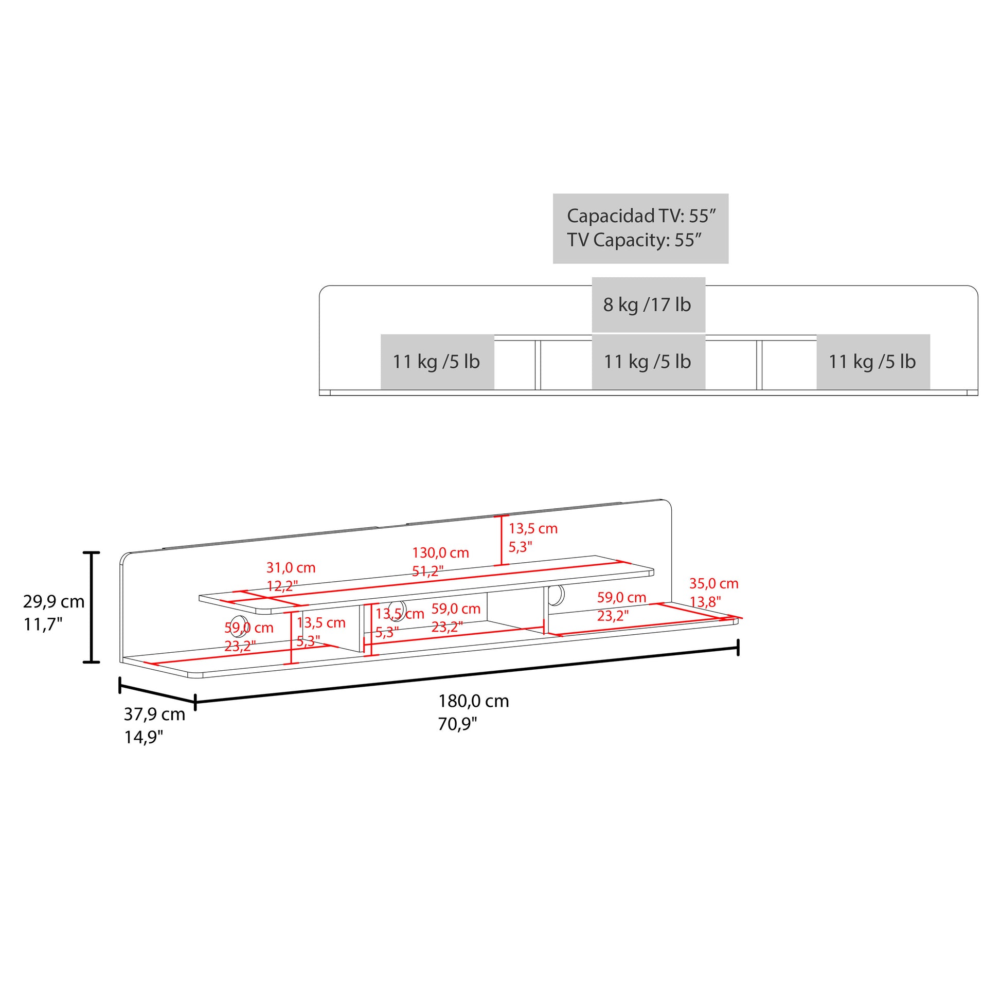- Durable Engineered Wood Construction. Crafted from high-quality engineered wood, the Marquis Floating TV Stand ensures durability and stability, making it a reliable choice for your TV and other media equipment.