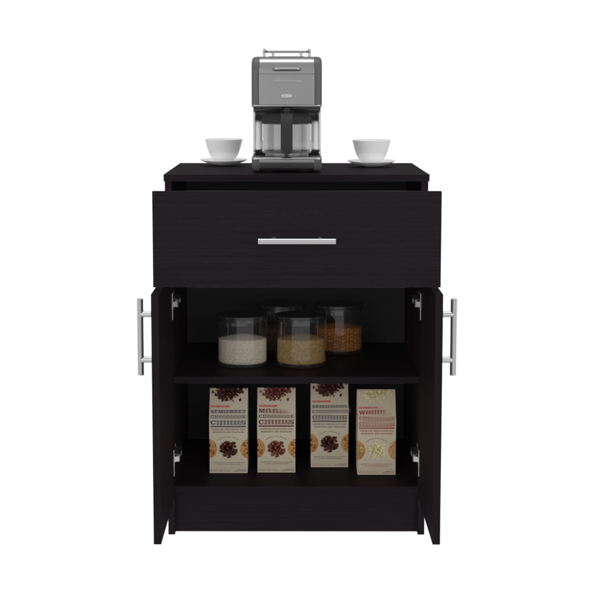 Mayorca Multistorage Pantry Cabinetet White - The Mayorca Multistorage Pantry brings clean and modern styling to your kitchen space. With a 28" diameter top workspace that can support a microwave or other kitchen accessories. Two large doors beneath a spacious pull out drawer provide all the storage space needed without sacrificing style or comfort. A tiered shelf within the doors helps organize your kitchen supplies. Clean metal handles complete the contemporary look. Measuring 33.5" H, 23.6" W and 15.9" D.