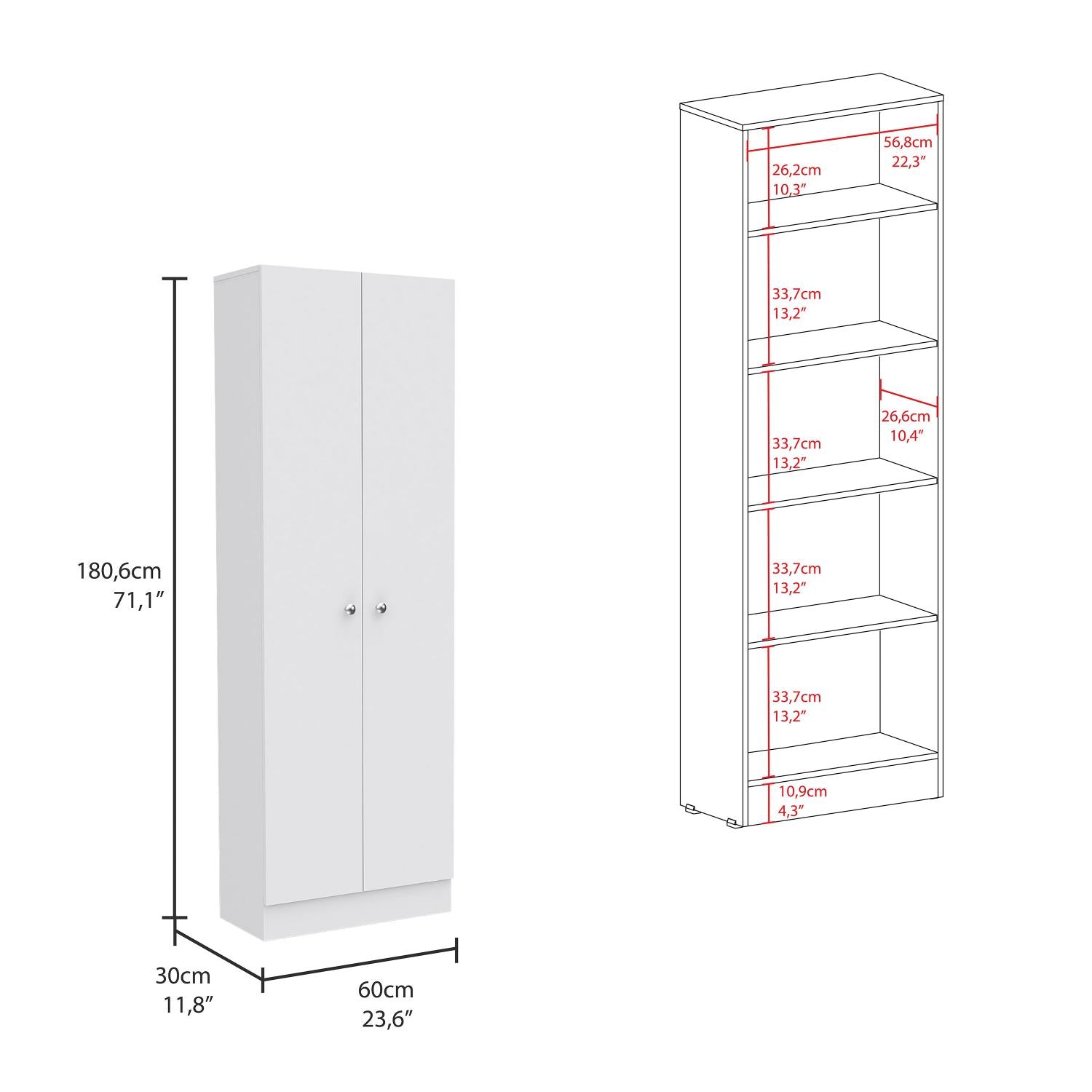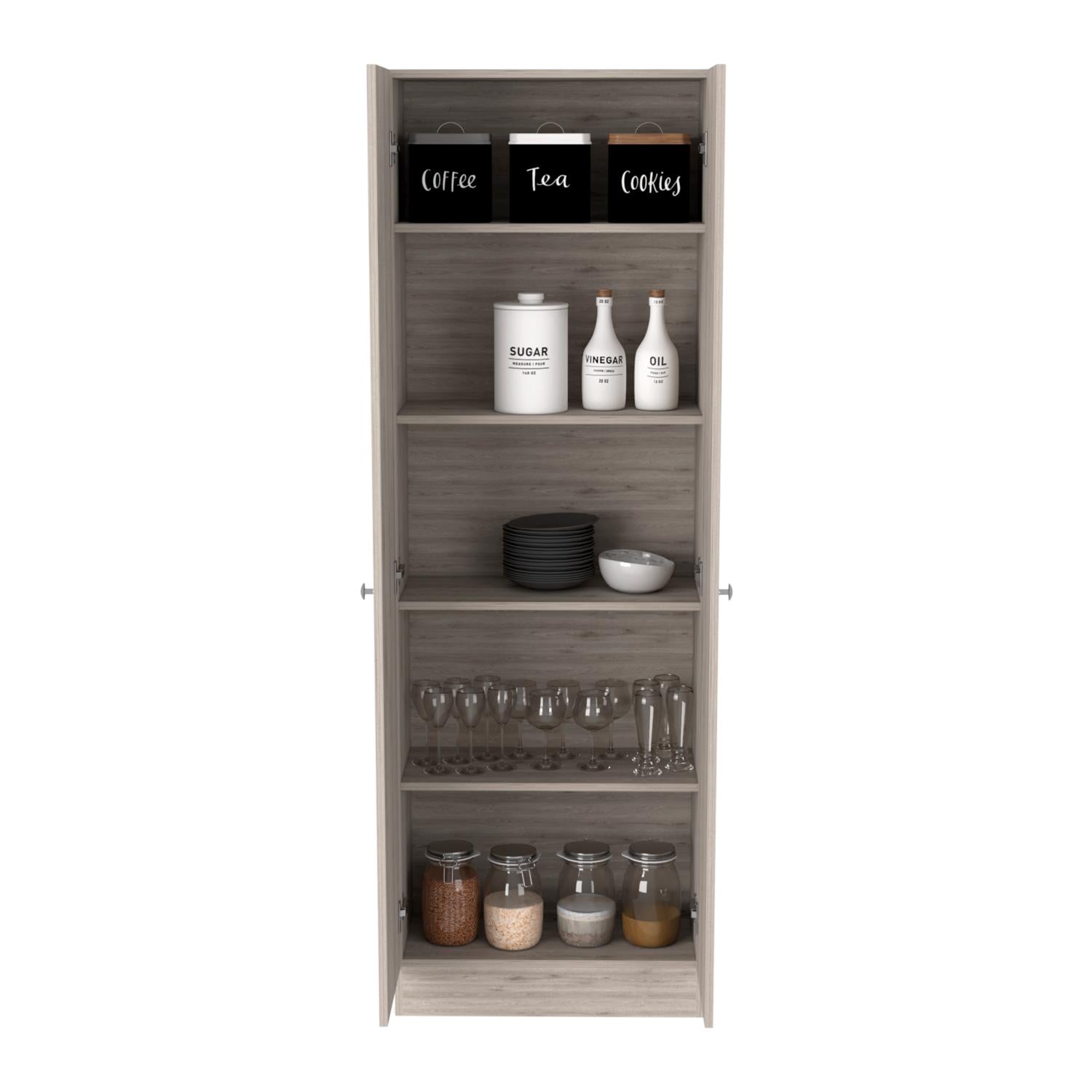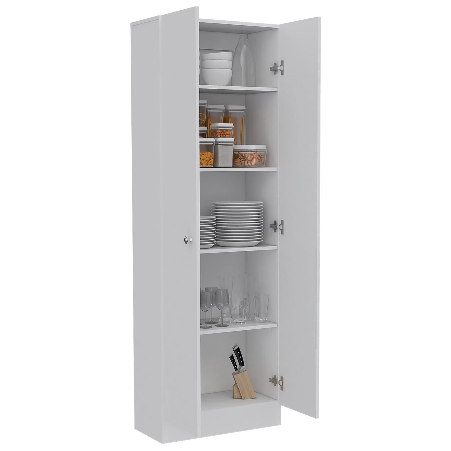 Lambardi Tall Multistorage Cabinet with Double Door, Five Shelves, Freestanding Kitchen or Laundry Room Storage Cabinet