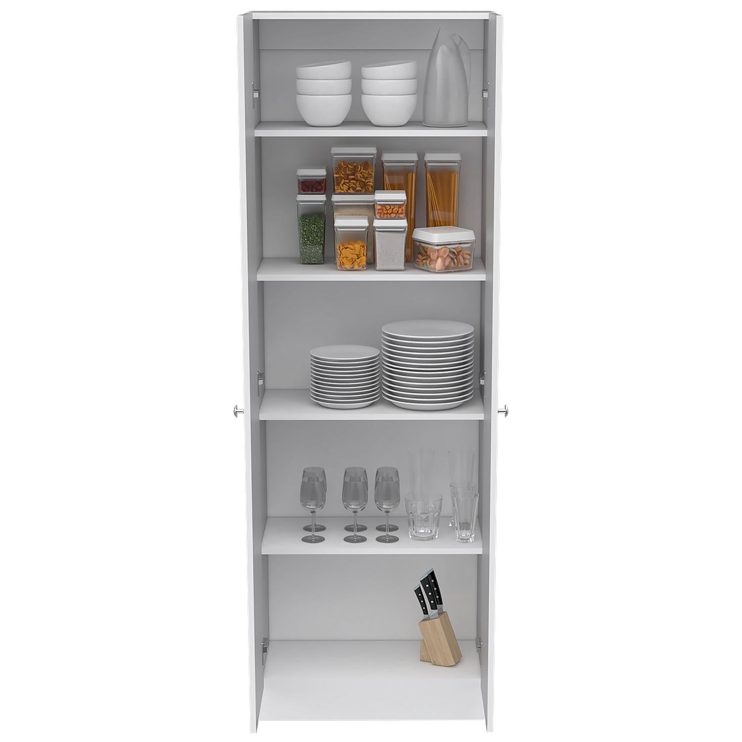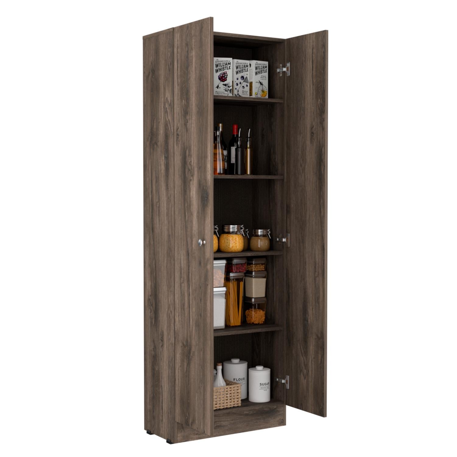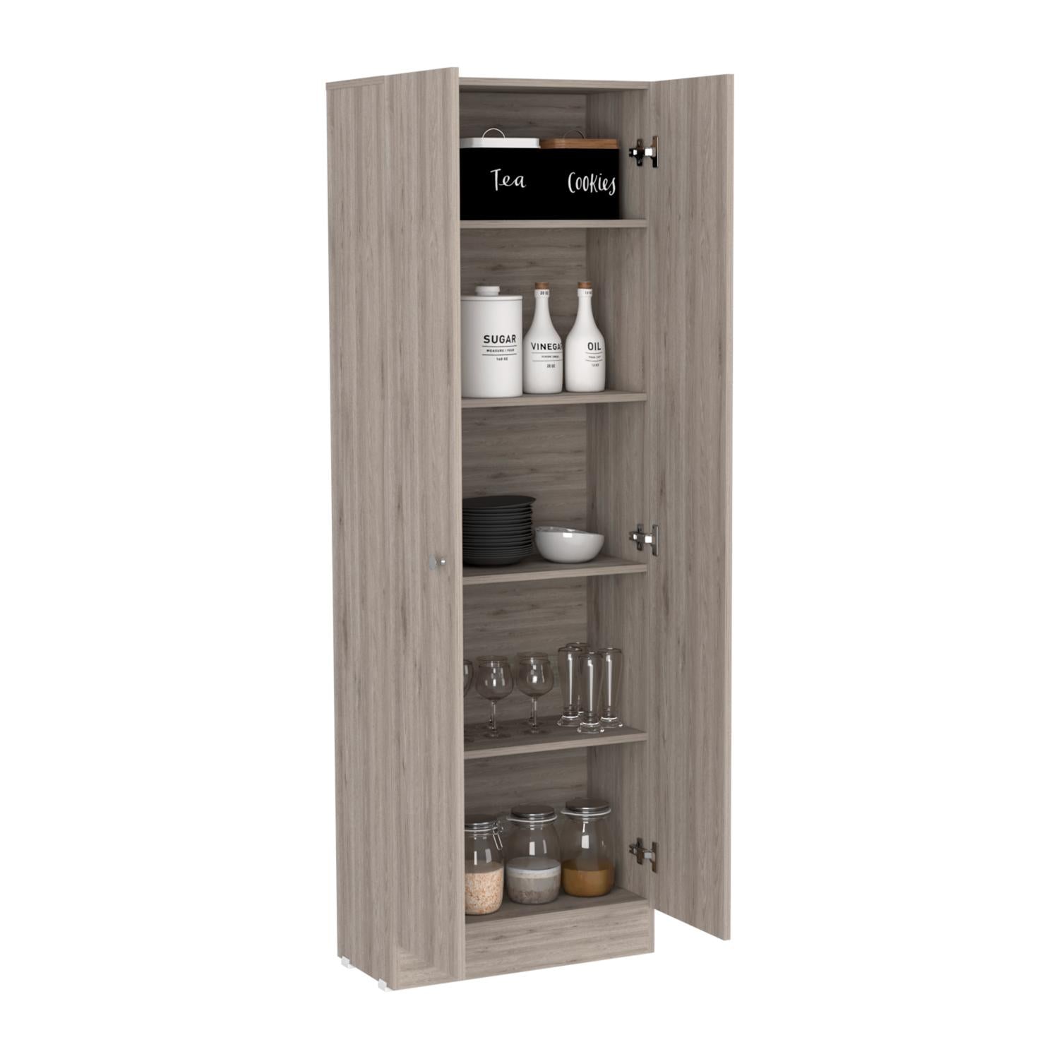 Lambardi Tall Multistorage Cabinet with Double Door, Five Shelves, Freestanding Kitchen or Laundry Room Storage Cabinet