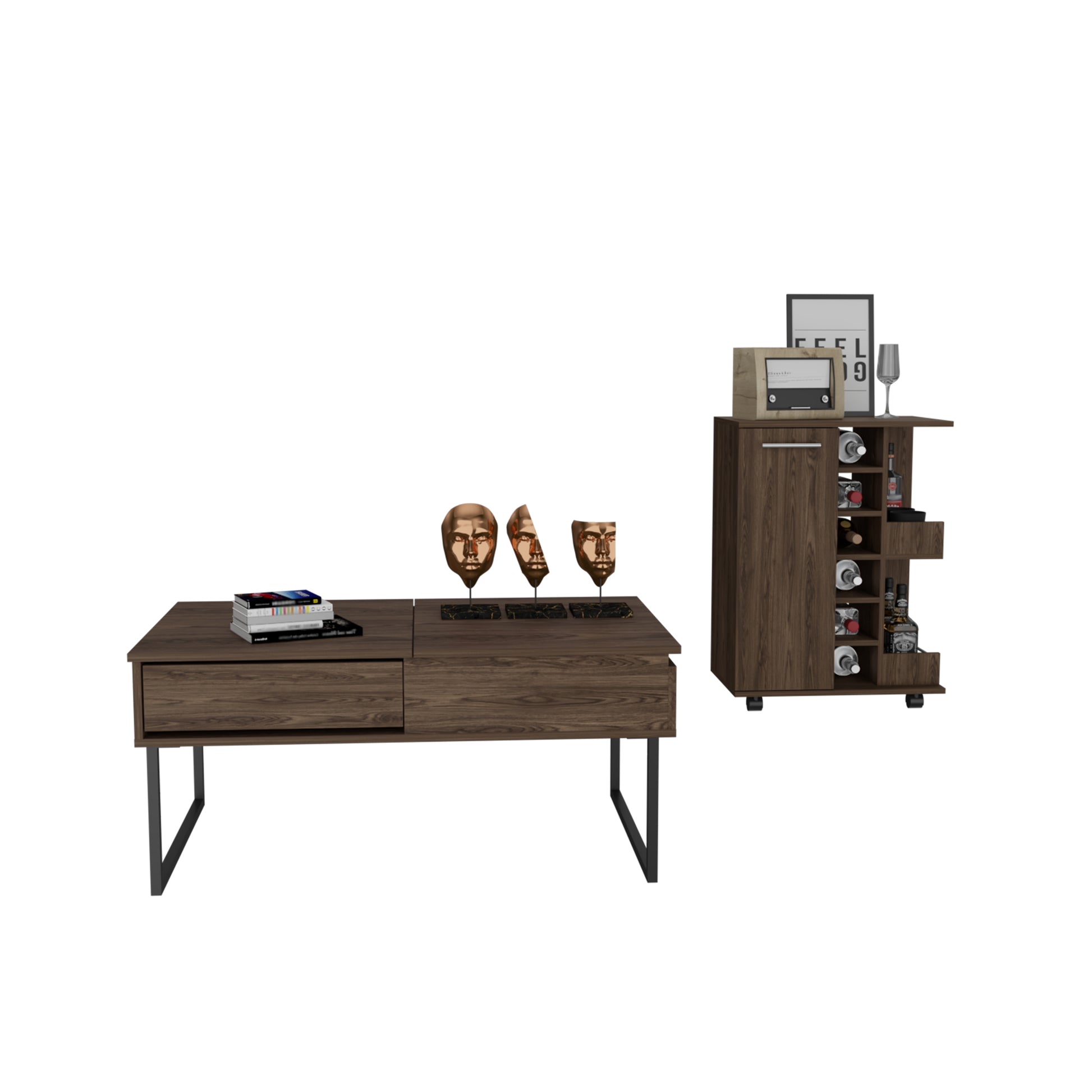 Murphys 2 Piece Living Room Set, Bar Cart + Coffee Table, Dark Walnut Finish