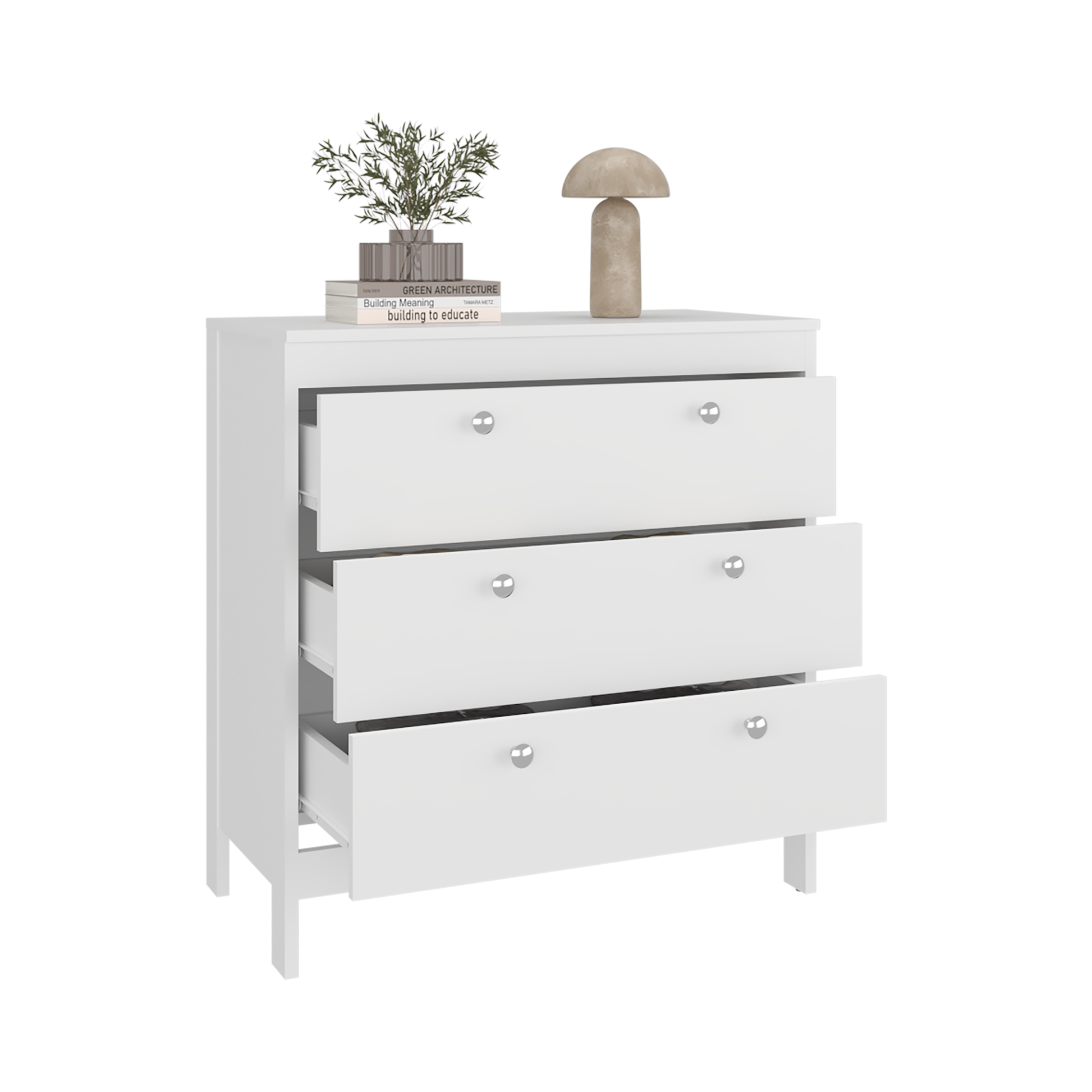The finish delivers a neutral and contemporary look that blends easily with different interior styles, including modern, minimalist, and transitional décor. This light-toned appearance helps create a bright and orderly environment while allowing the dresser to integrate seamlessly with existing furnishings.