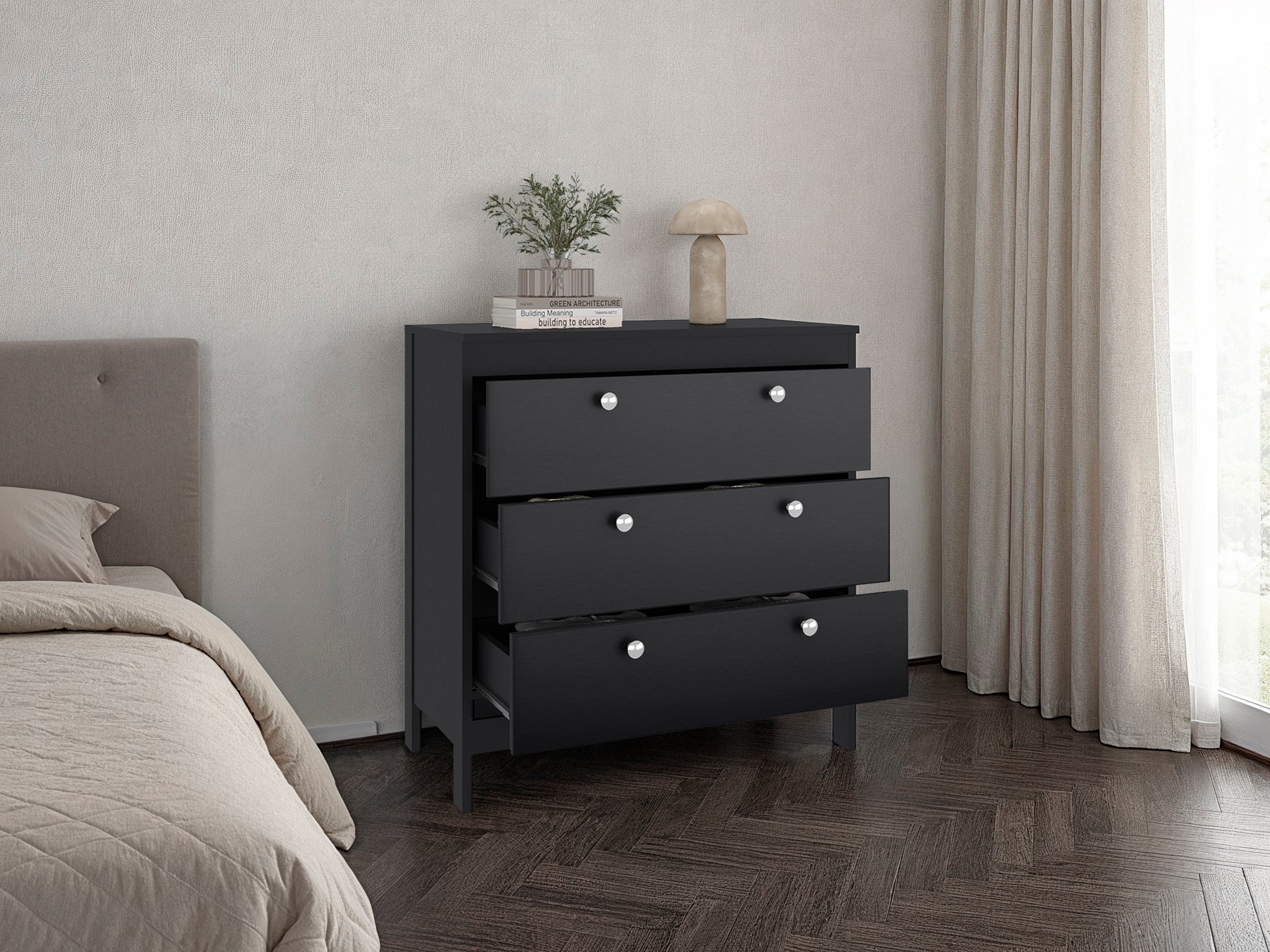 The Newcastle Dresser is designed to provide reliable storage while maintaining a clean and modern appearance suitable for a variety of living spaces. Its streamlined form supports everyday organization, making it an ideal addition to bedrooms, guest rooms, or other areas where practical storage is essential.