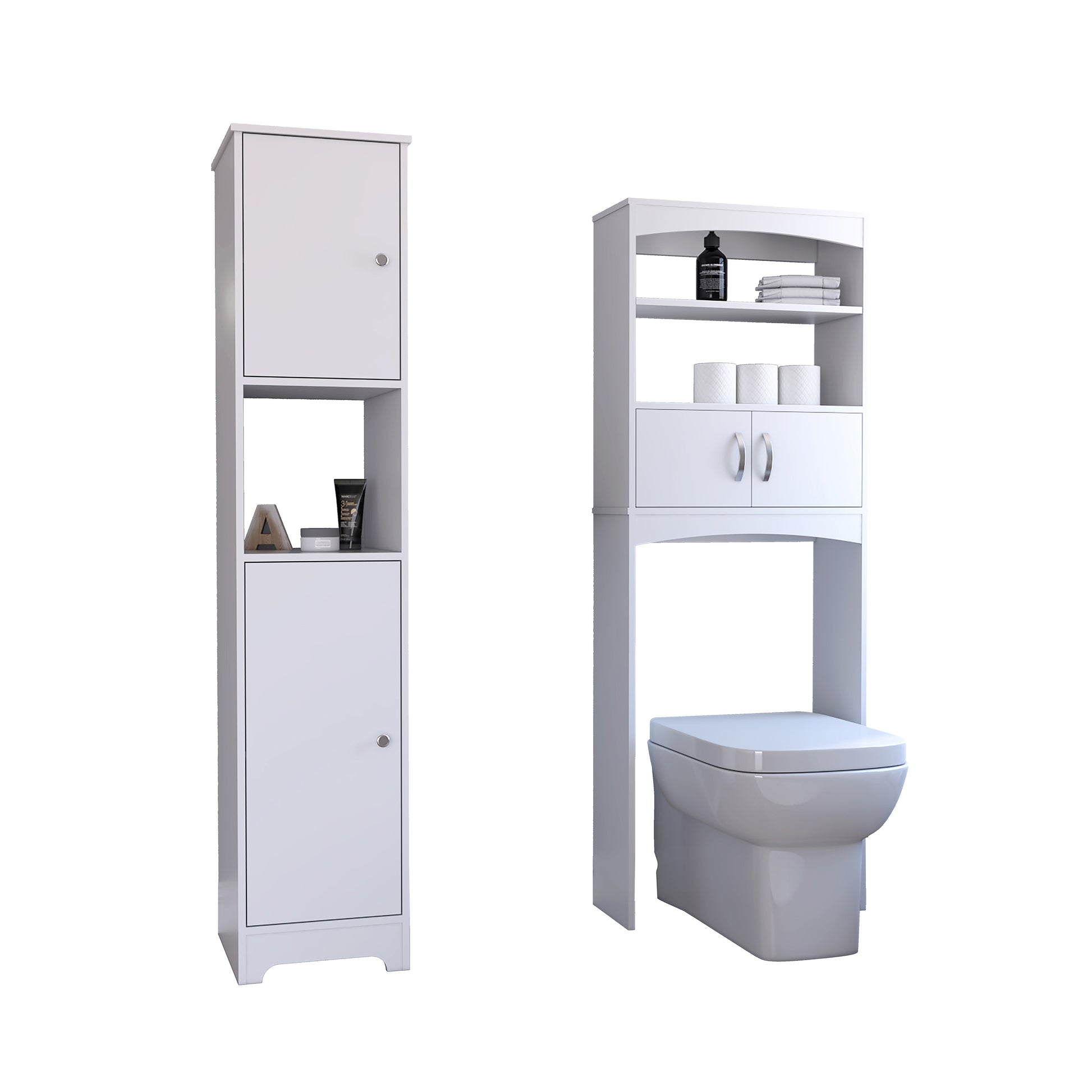 Oakland 2 Piece Bathroom Set, Linen Cabinet + Over The Toilet Cabinet